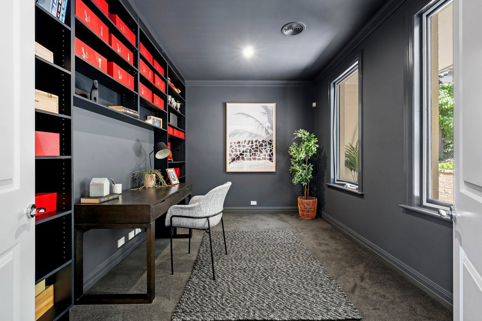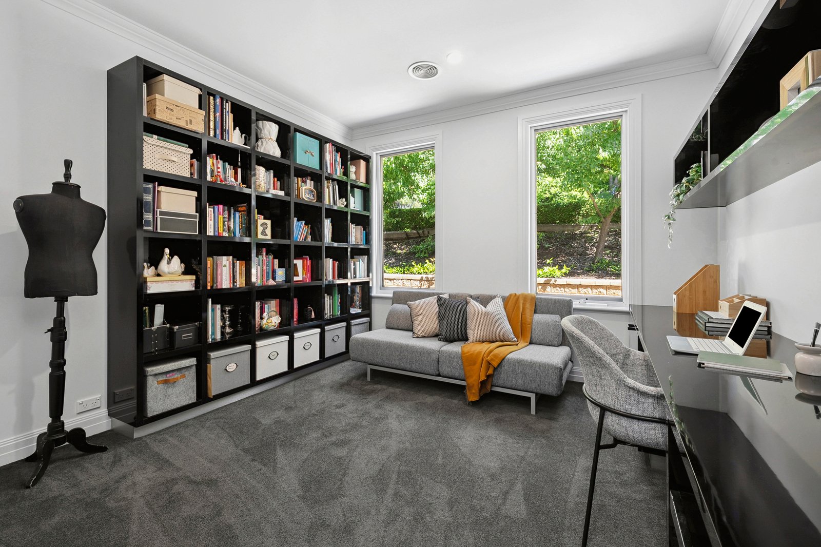 Designed for comfort and functionality, additional features include a dedicated study with built-in shelving, large laundry with generous linen storage, ducted heating, solar panels for energy efficiency. sound system, and electric blinds in the living room and master bedroom.