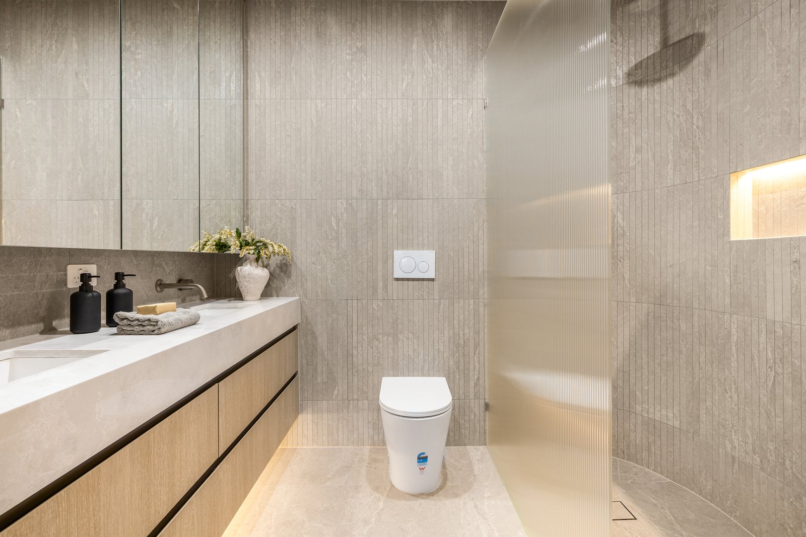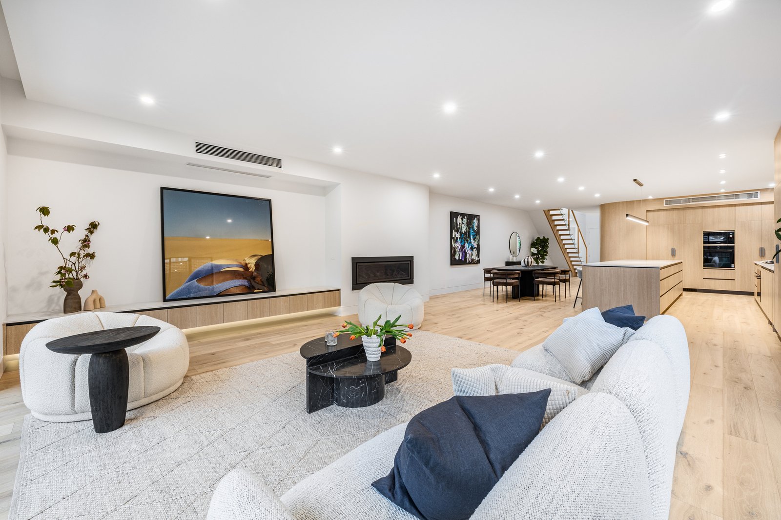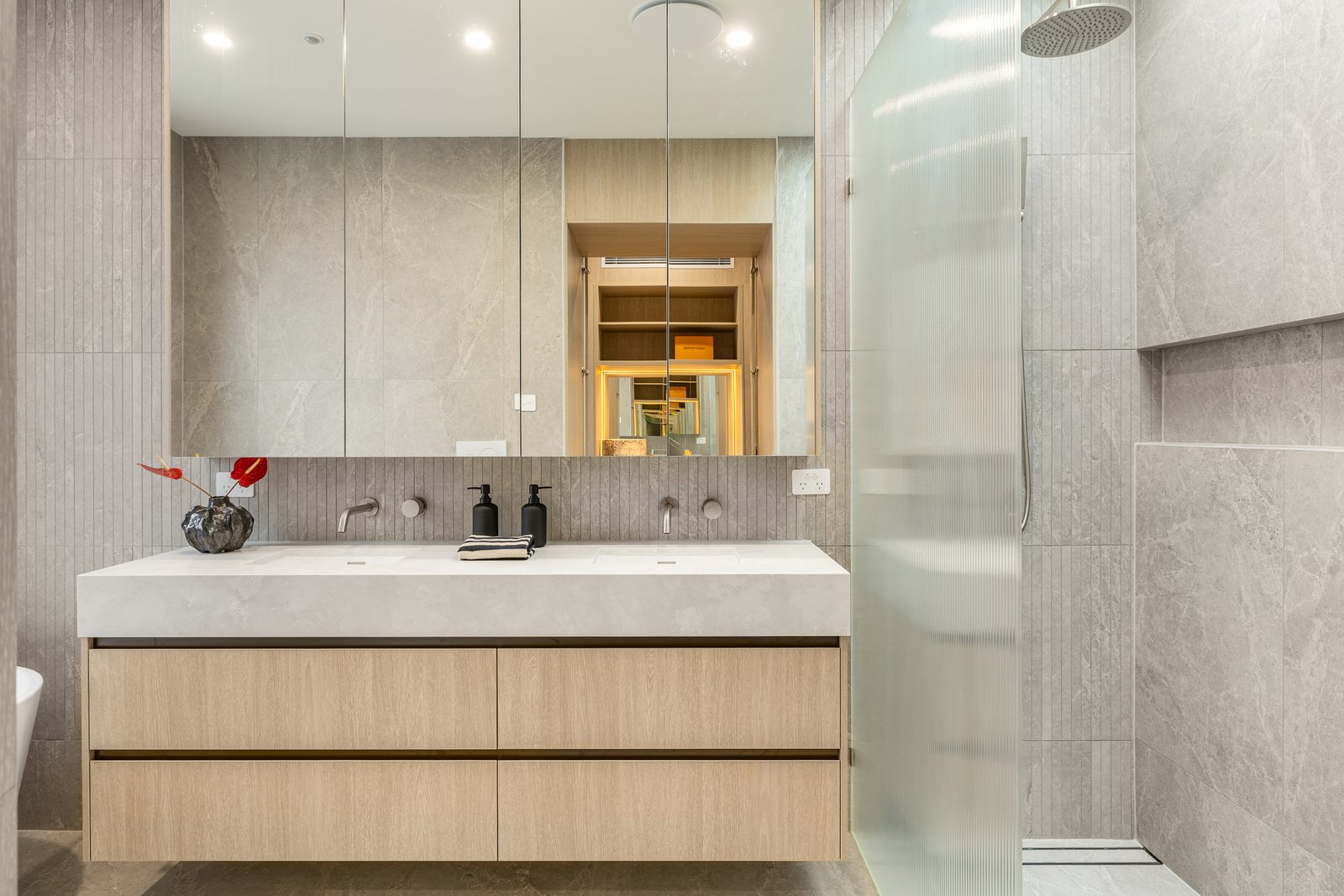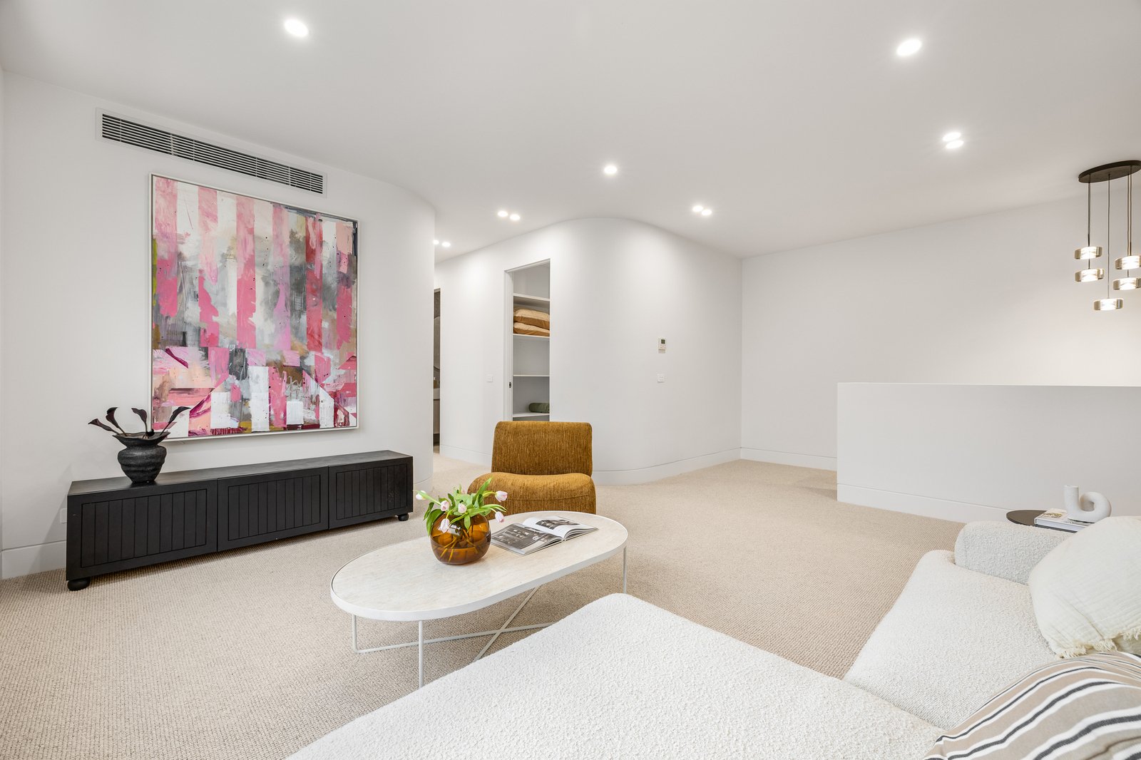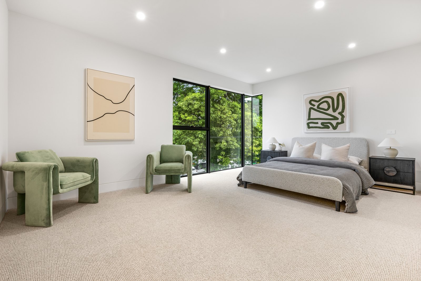Immensely luxurious with sun-filed indoor-outdoor living facing north at garden level, and a large central lounge alongside a quiet home-office on the first-floor, this breathtaking home offers expansive full-suite accommodation with a fully-tiled bathroom beyond a walk-through robe for every bedroom (upstairs and down), and a vast master-domain with ‘secret’ dual-vanity ensuite with freestanding bath.