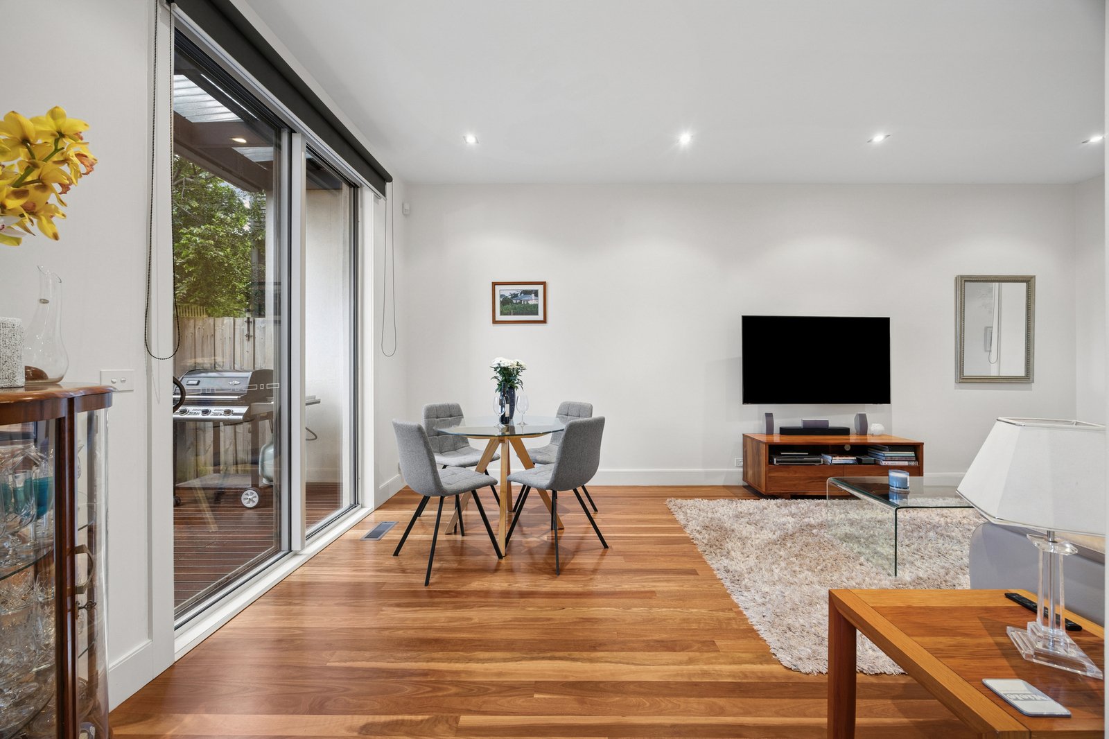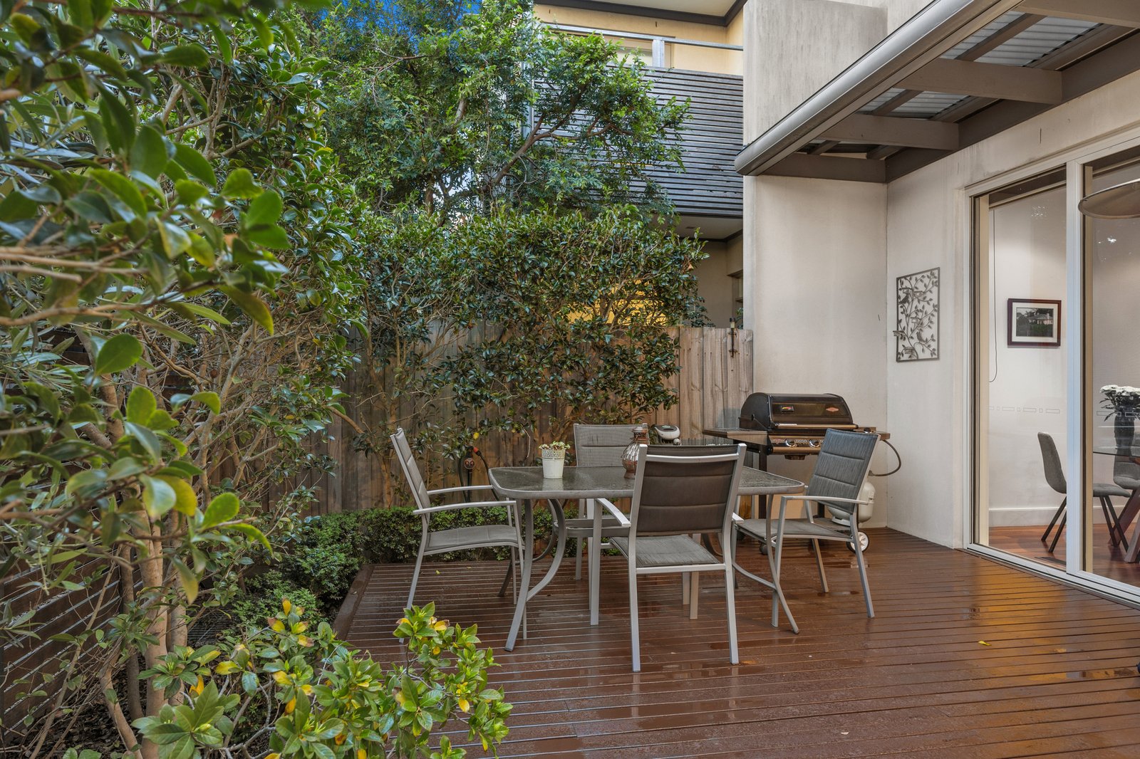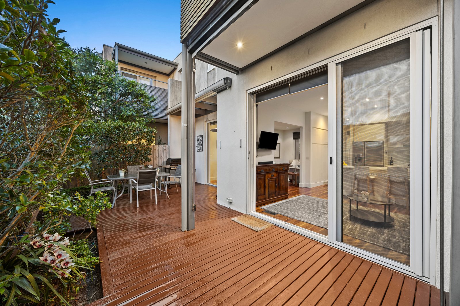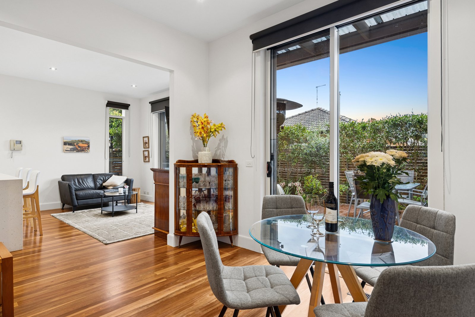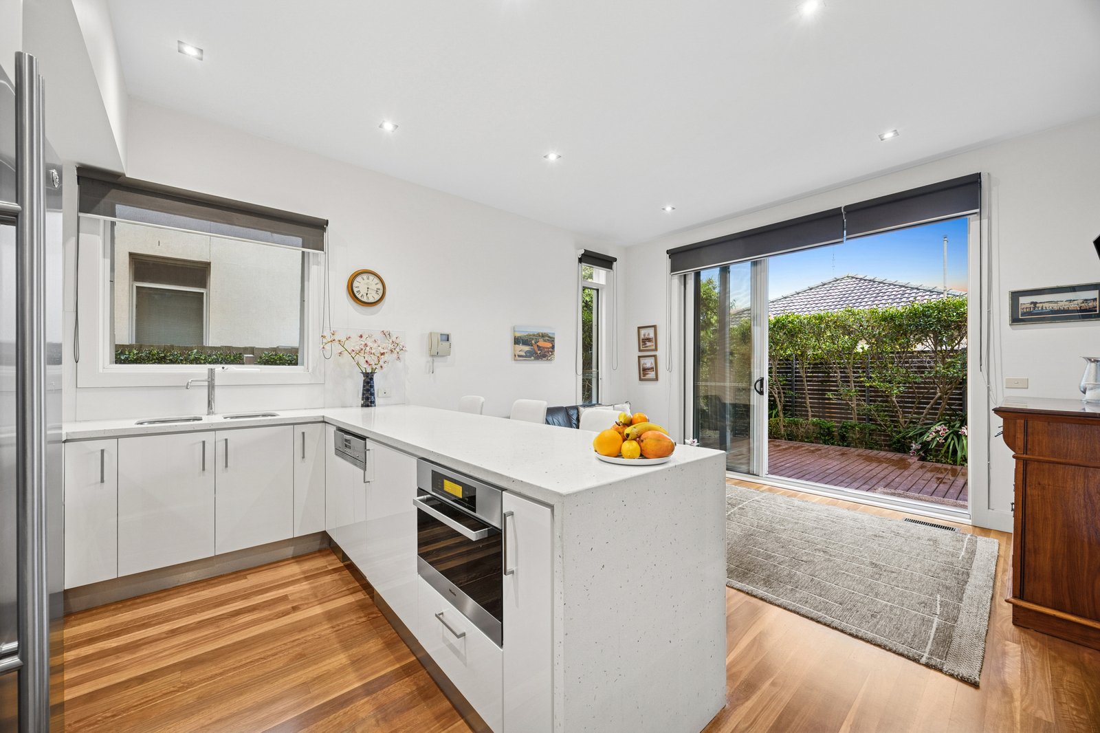 The rear of just two on the block, the home is enriched by gorgeous Spotted Gum floors which flow through the open plan lounge and dining area to the refreshed stone kitchen boasting a suite of Miele appliances including a semi-integrated dishwasher and two ovens including a steam/combi oven. A second living area can be used for meals or relaxation - both this space and the main living area feature sliding doors out to the sundrenched alfresco deck which is protected by both shade blinds and a sun awning.