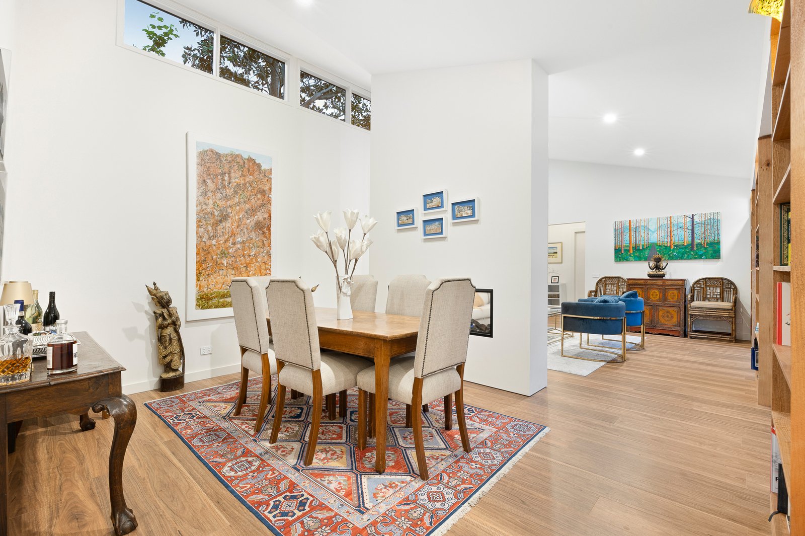 Secluded beyond the towering gums of Yuille Street, a secure keypad entrance introduces a serene water feature and landscaped walkway that immediately sets a restorative tone. Inside, sky-high clerestory windows, soaring raked ceilings and expanses of glass fill the interiors with natural light and leafy outlooks, creating a unique sense of openness and connection to the outdoors.