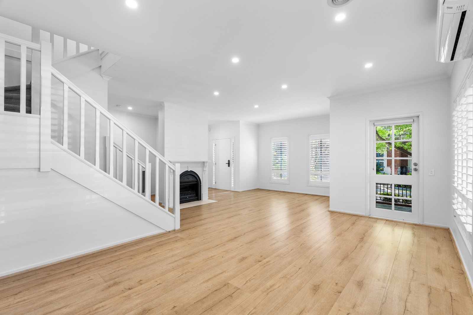 The generous ground floor unfolds into a bright and expansive living room with access to a private front patio, perfect for entertaining or quiet relaxation. A separate dining area adjoins the modern kitchen, which is equipped with quality appliances, ample bench space, and pantry storage, while a second patio sits at the rear beside the laundry.
