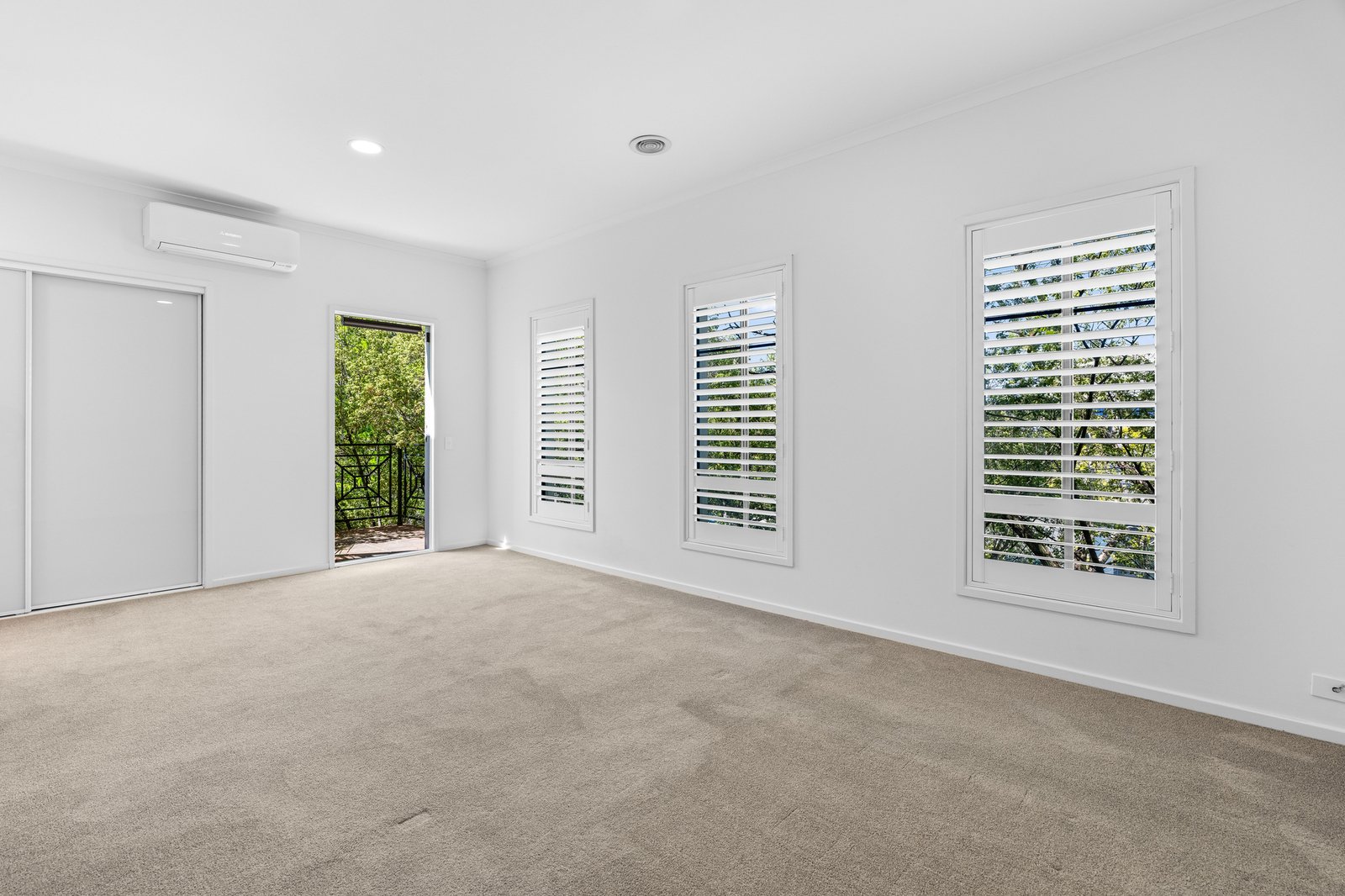 Upstairs, three well-proportioned bedrooms feature built-in robes and individual split system air-conditioning. The main bedroom enjoys a balcony, ensuite with bathtub, and leafy outlook, while the other two bedrooms share a stylish central bathroom and an extra separate toilet for convenience.