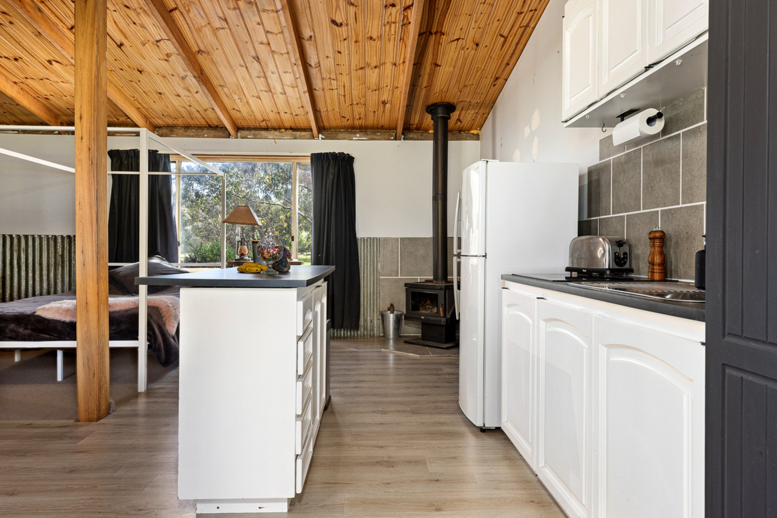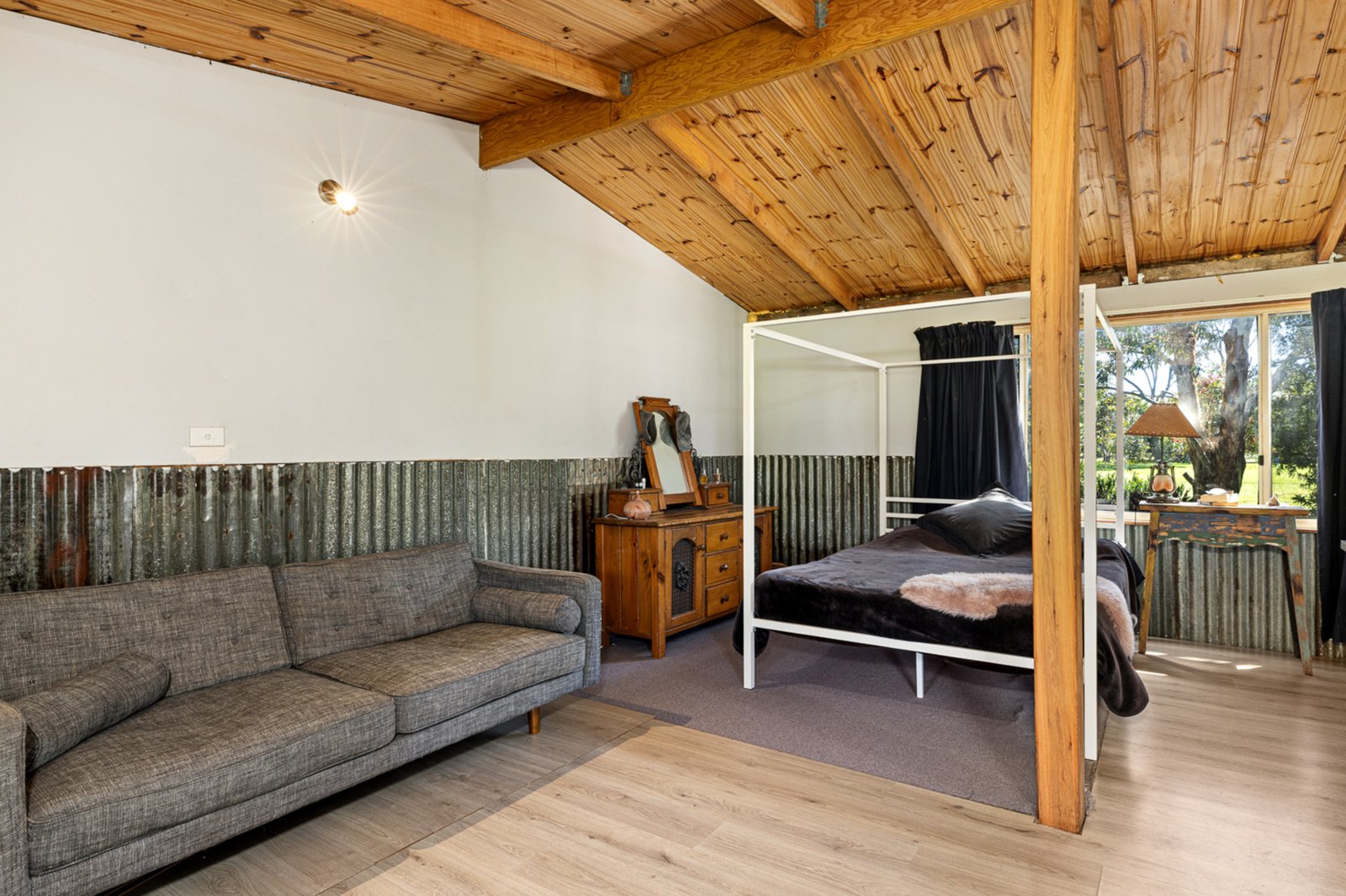 For those needing extra space, the property offers a large two-car shed with an adjoining studio, featuring its own kitchen and wood heater — perfect as a workspace, hobby room, or potential guest retreat. There are also multiple other sheds for all your storage needs, plus a dam on the property adding to its rural appeal.