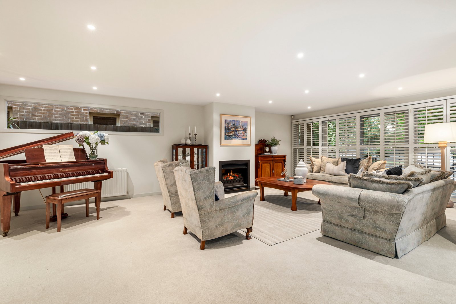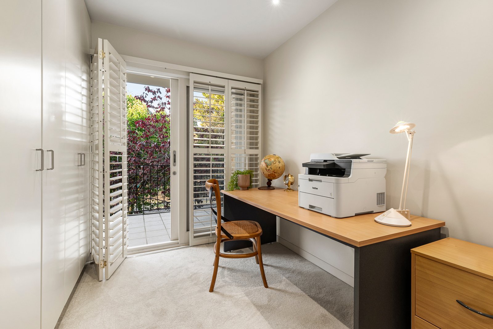 Upstairs, a sun-filled study and three generous bedrooms provide a sanctuary of comfort and privacy. The parkside main suite features a walk-in robe, spa ensuite and full-length terrace overlooking treetops, while two additional bedrooms with custom joinery share a marble bathroom of equal quality.