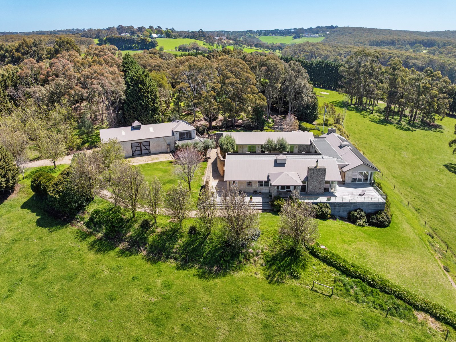 Reached via a long, winding country lane, the property rests at its very end, bordered by Manton Creek in a setting of absolute seclusion. With no passing traffic or neighbouring presence, the peace feels uninterrupted, yet just beyond the gates lie the region’s celebrated wine and dining trail, Red Hill Consolidated School, premier golf courses and Flinders Village.