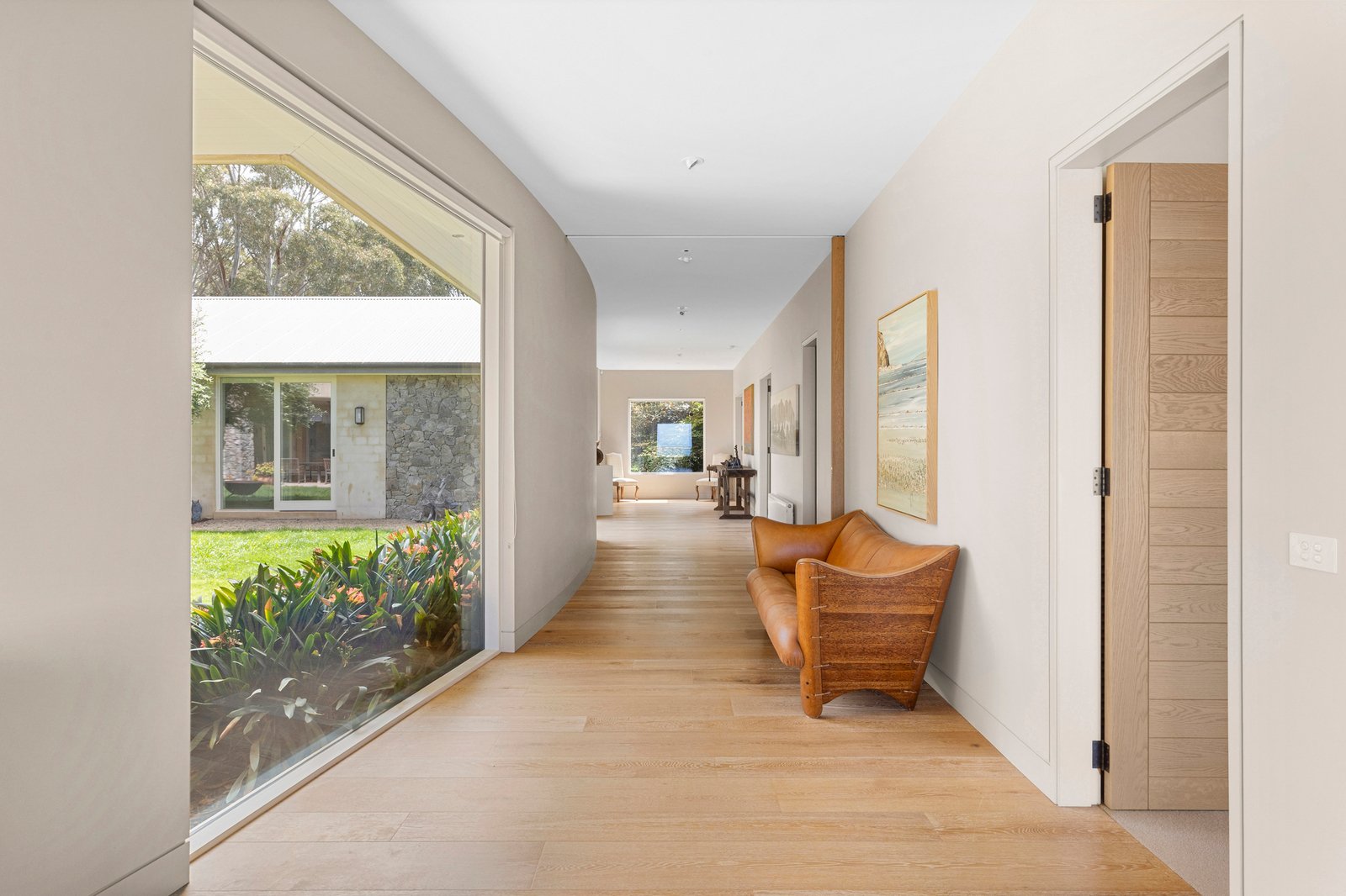 Drawing inspiration from the Mediterranean and shaped by a devotion to bespoke materials and open, usable spaces, ‘Pembrey Farm’ has been cherished for nearly three decades, its timeless yet contemporary composition expressed through curved walls, broad walkways and glazing that frames sweeping views across the contours of the countryside toward Phillip Island and The Nobbies.