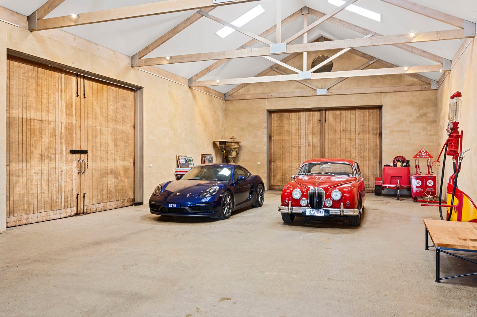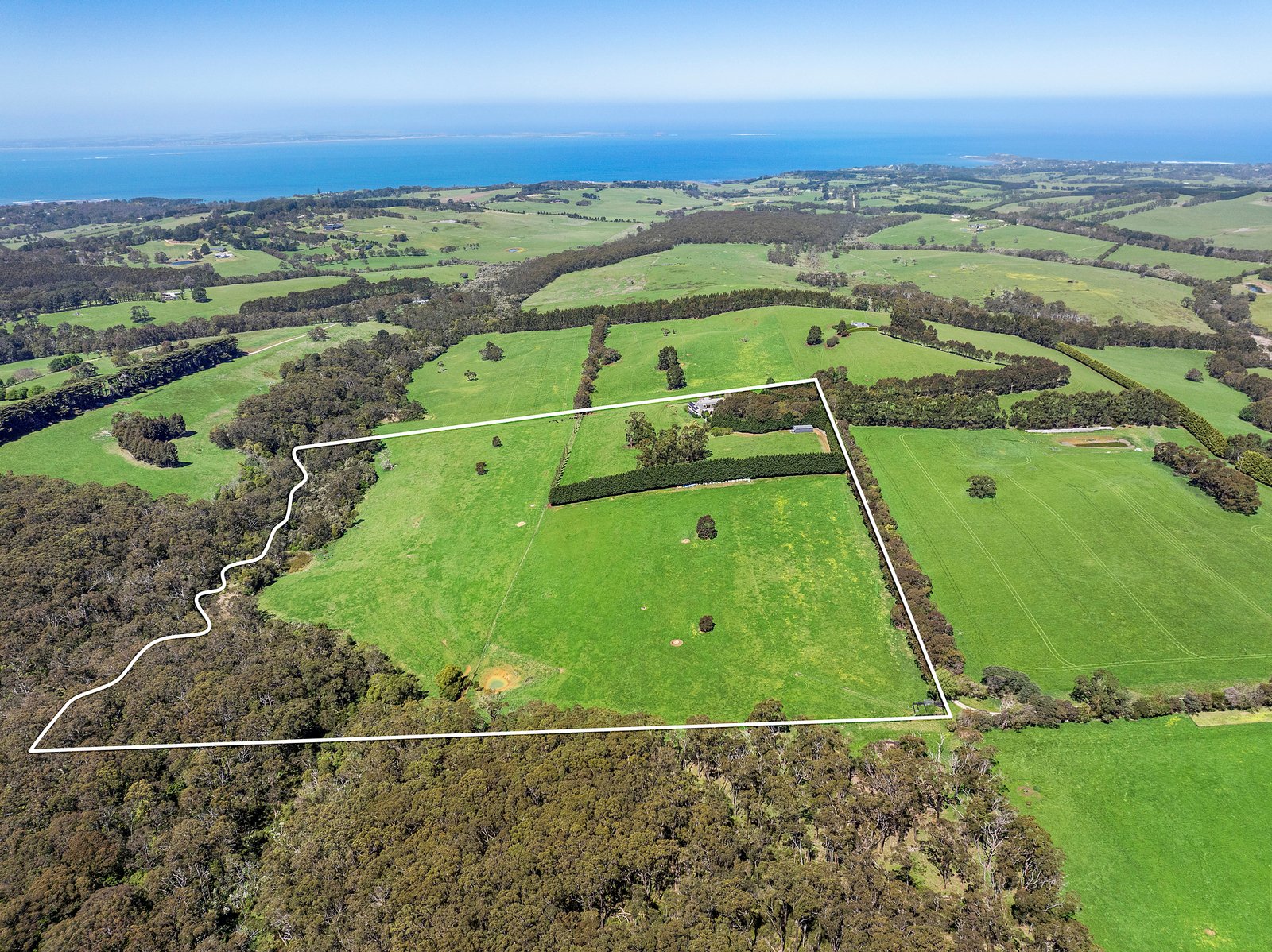 Solar panels with battery storage, a machinery shed, water tanks, bore-fed irrigation, two dams and four electric-fenced paddocks with troughs reinforce its agricultural capability across 52 lush acres (approx), while its Primary Producer status ensures exemption from land tax. Further high-end provisions include CCTV security, hydronic heating, reverse-cycle climate control, a mudroom entry, dedicated home office and a ten-car barn-style garage.