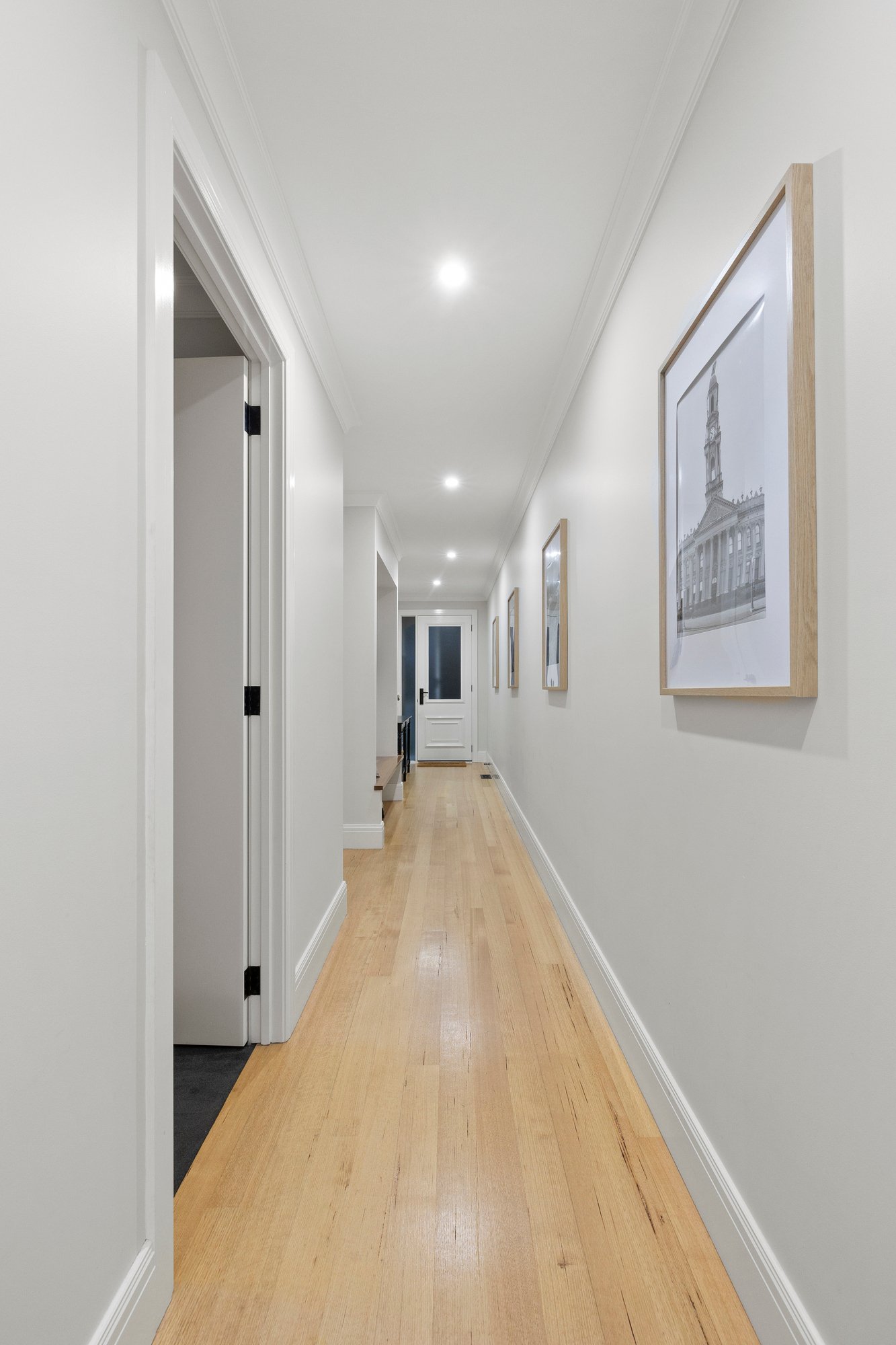 Cascading across two faultless levels, the smartly finished home opens to a welcoming entrance where a mudroom-style niche with bench seating & hooks is a great way to keep bags and coats neatly organised.