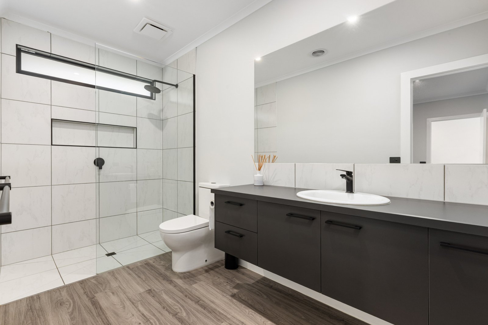 The home offers three generous bedrooms, including a king-sized master suite complete with a walk-in robe and a modern ensuite boasting a large shower. The remaining bedrooms are well-sized and serviced by a central bathroom with quality fittings and finishes.