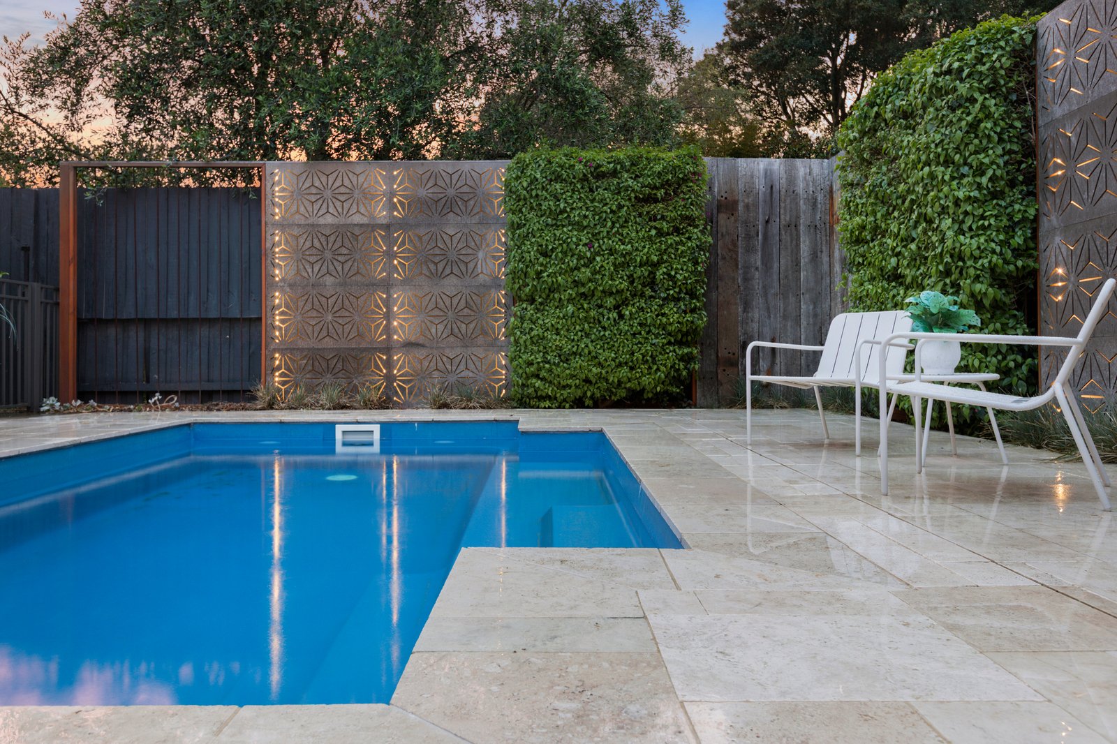 Outside, the private rear garden captures glorious northern sun, with paved terraces ideal for lounging by the heated swimming pool, surrounded by lush, low-maintenance greenery - a sublime haven for al fresco enjoyment.
