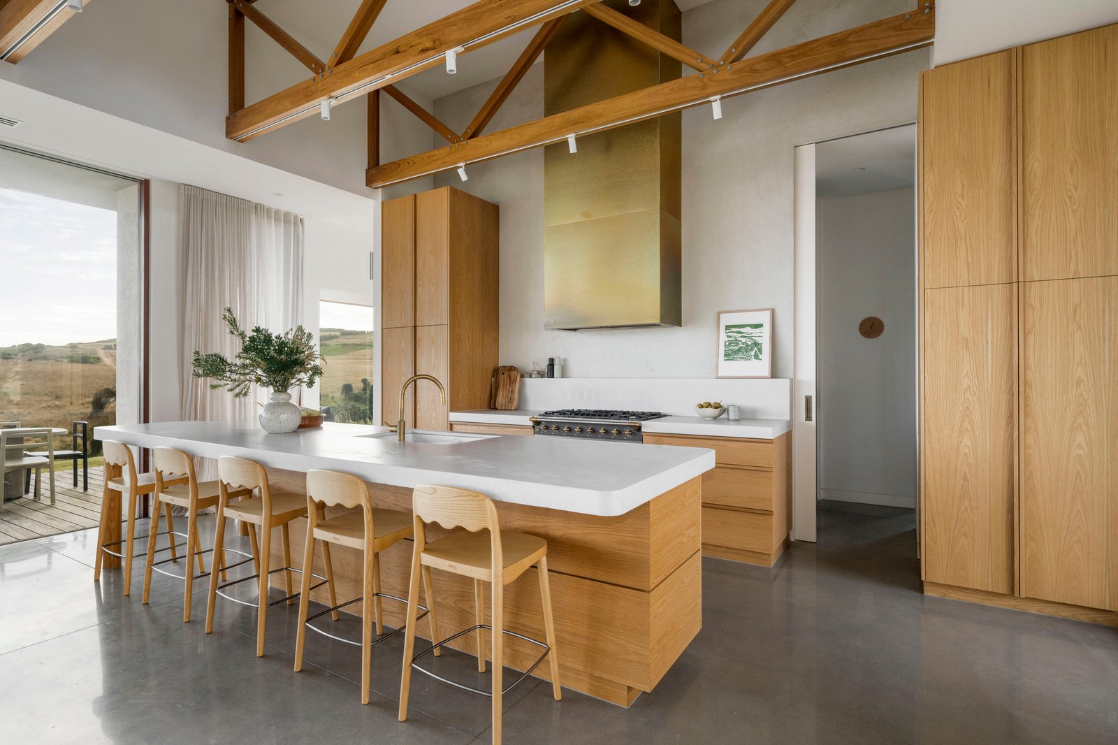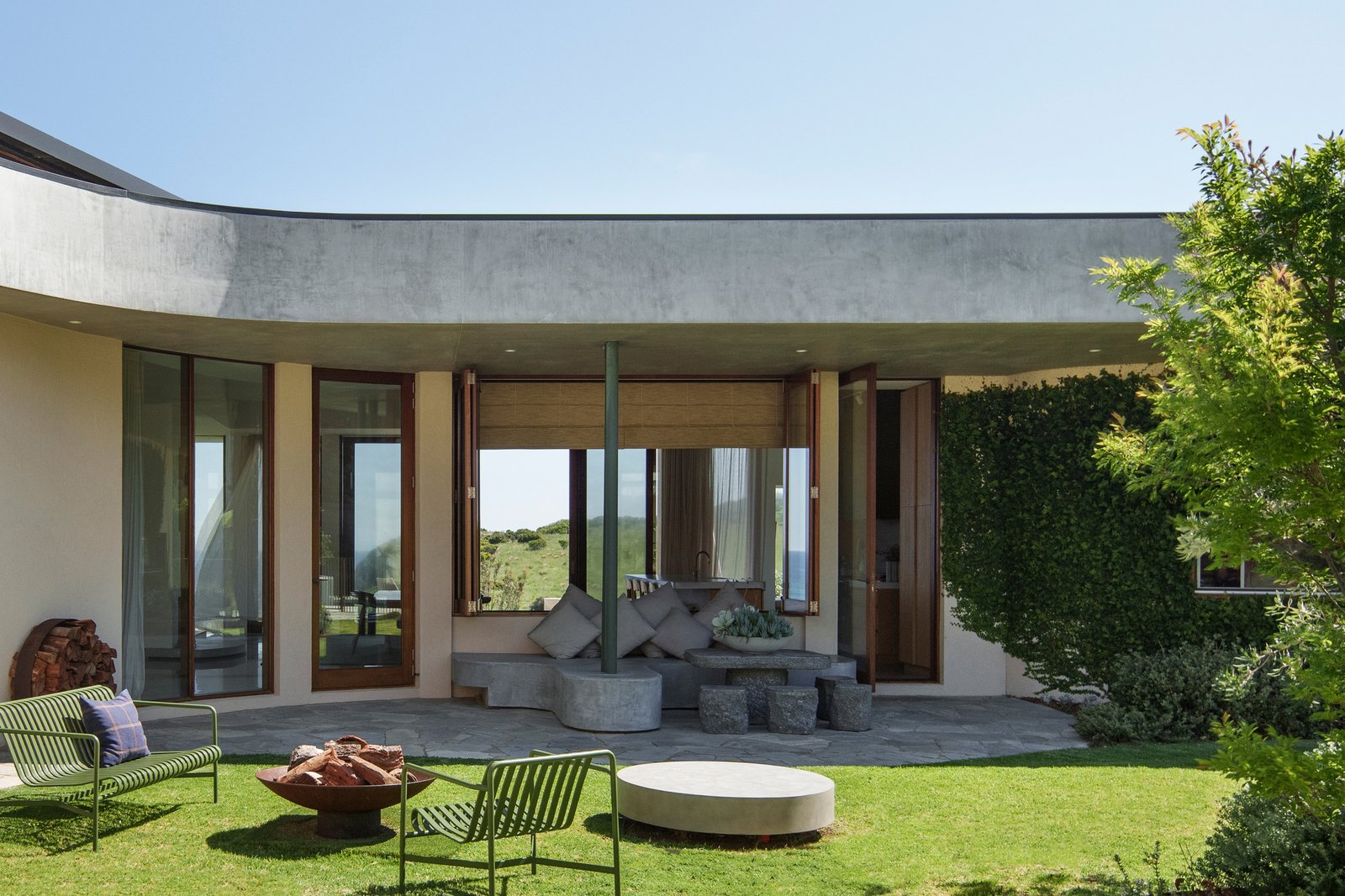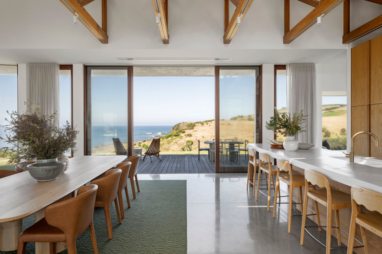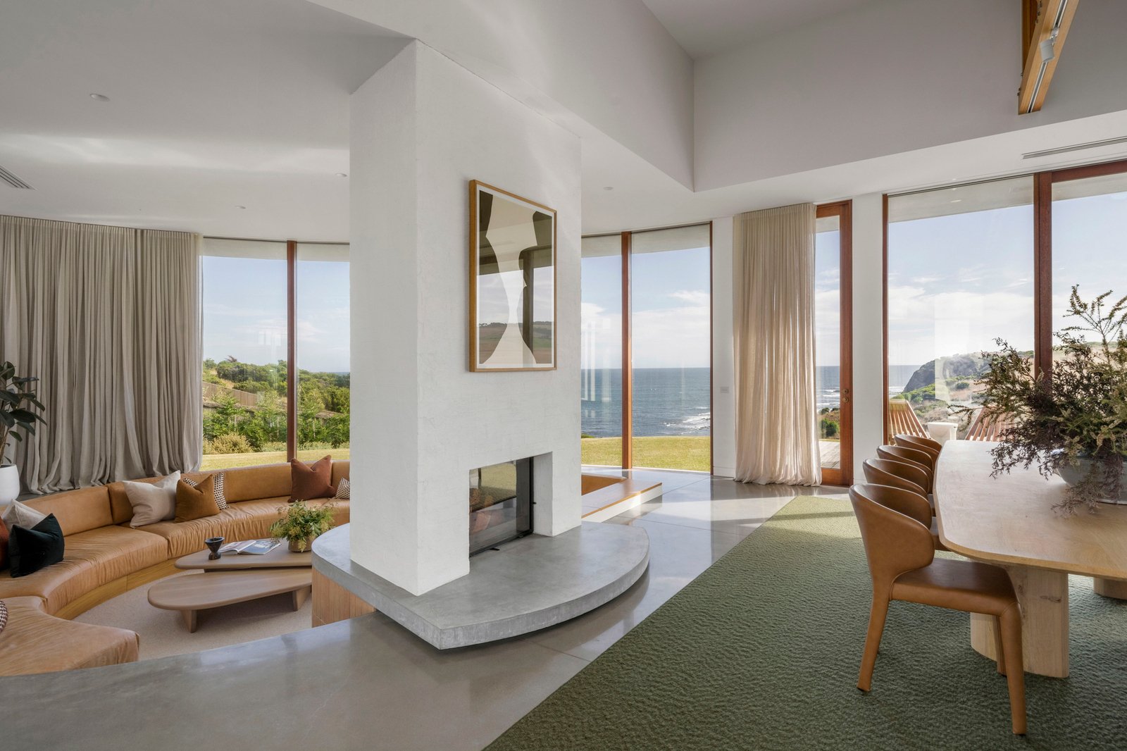 Set upon approximately 1.15 acres with direct surf and trail access, the home’s sculptural single-level form curves effortlessly with the landscape. Every detail has been conceived to honour its surroundings - from the floor-to-ceiling curved glazing and 5-metre ceilings to the tactile polish of its heated concrete floors. Inside, a sense of retreat flows through three generous bedrooms and a beautifully crafted family bathroom, alongside a home office or lounge designed for quiet reflection.