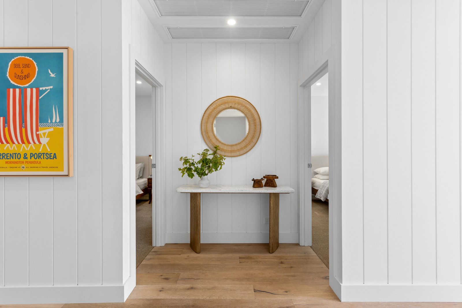 Constructed without compromise by respected local builder Nick Jansen, this single-level coastal hideaway captures the essence of Peninsula living, perfectly positioned at the narrowest point between the ocean and bay beaches.