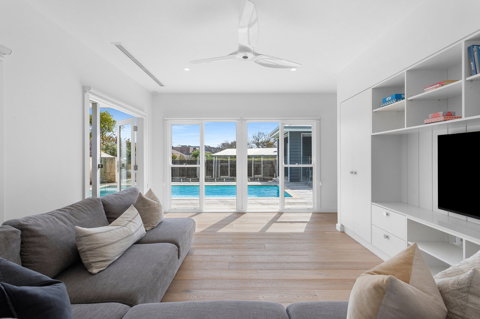 Set within established, low-maintenance gardens of approximately 706 sqm, the outdoors feels instantly relaxed and inviting. The heated pool and spa take centre stage, edged by irrigated greenery and a built-in pizza oven that turns family nights and weekends with friends into something special. French doors open wide from the living room to a generous timber deck, blurring the edges between indoor connection and open-air living.