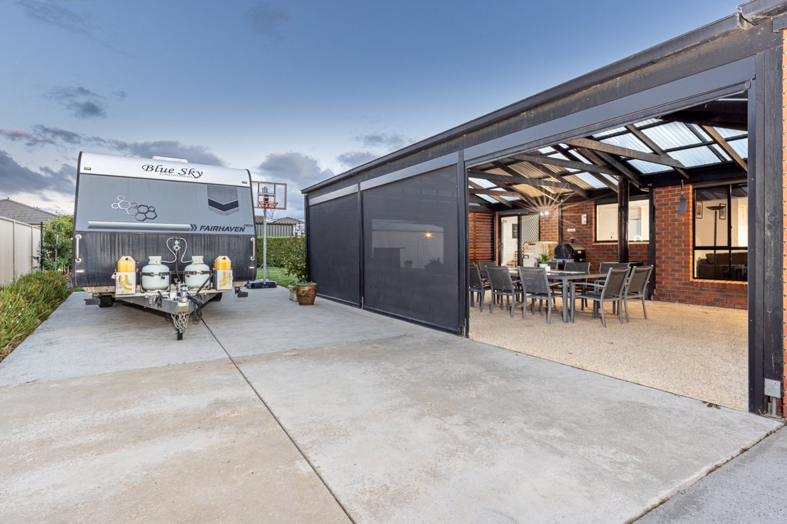 Outside, the generous 866m² block offers endless possibilities — with double gate side access allowing space for a 22ft caravan and 22ft boat, plus room to add a granny flat or second dwelling (STCA). Entertain friends and family under the expansive alfresco area complete with zip track blinds, while a powered 6x3m shed adds practicality for storage or hobbies.