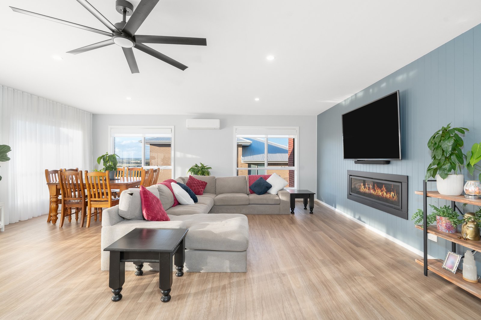 From the moment you step inside, the home exudes a light and airy feel and provides seamless access to the main level of the residence. Neutral tones and an abundance of natural light create a calm and welcoming feel, the generous open-plan living and dining zone forms the true heart of the home, anchored by a contemporary Hamptons-inspired kitchen featuring sleek stainless steel appliances, dishwasher and a fantastic walk in pantry. The connection to the elevated vistas across the rolling Barrabool Hills and beyond are on full display day-long and are enjoyed more so from the balcony adjoining your kitchen, living and dining.