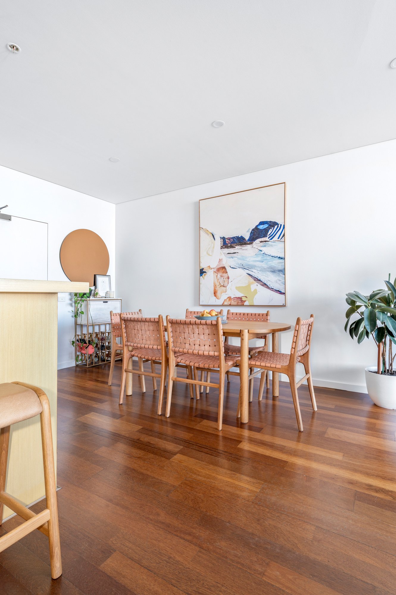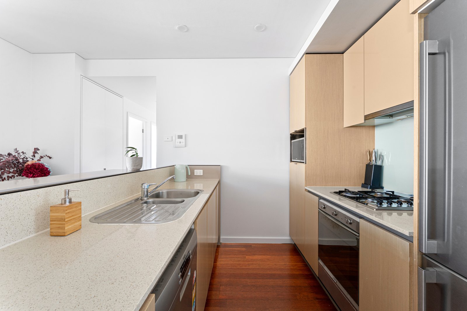 Inside, effortless sophistication defines every detail- from the expansive open-plan living and dining domain to the beautifully appointed stone kitchen with stainless steel appliances, gas cooking and dishwasher. Both bedrooms enjoy serene water views and built-in robes, while the master suite elevates everyday living with its walk-in robe, private ensuite and sweeping city skyline outlooks.