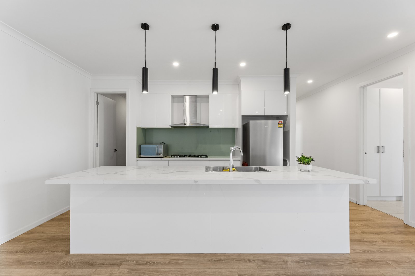 Showcasing contemporary appeal and effortless low-maintenance living, this stylish four-bedroom, two-bathroom residence forms part of an exclusive trio of modern townhomes. Designed with a focus on comfort and everyday ease, the spacious north-facing open-plan living and dining domain is filled with natural light, seamlessly connecting to the stone-appointed kitchen featuring quality stainless-steel appliances and a generous island bench — perfect for relaxed meals and family gatherings. Sliding doors extend the living space to a sun-soaked entertainers’ deck and private, easy-care garden retreat.