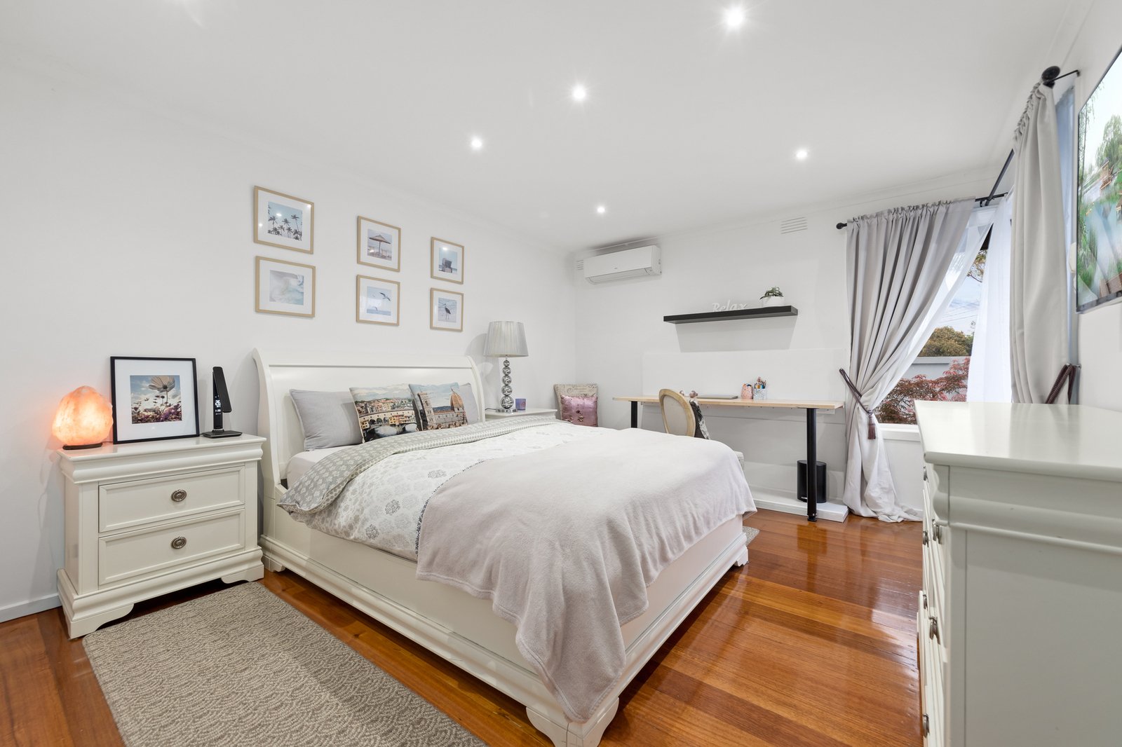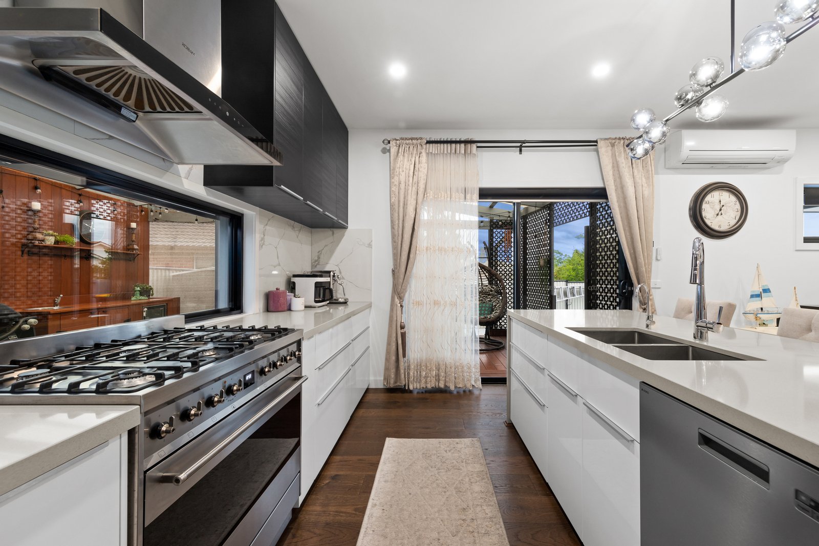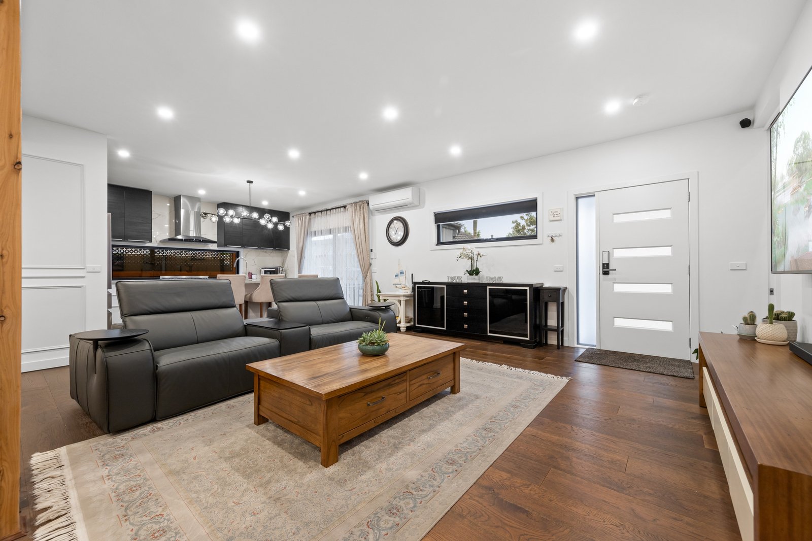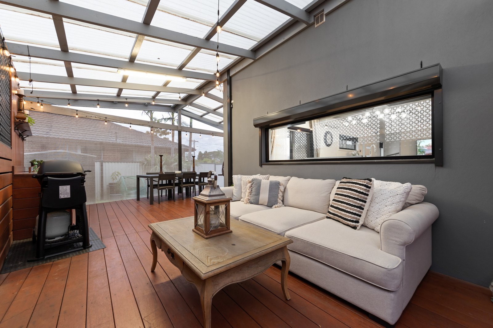 Step outside to a covered decked alfresco, ideal for weekend BBQs, gatherings with family and friends, or cozy evenings. Additional highlights include multiple air conditioners, a generous-sized laundry with ample storage, and a remote-controlled gate offering enhanced security and convenient access.