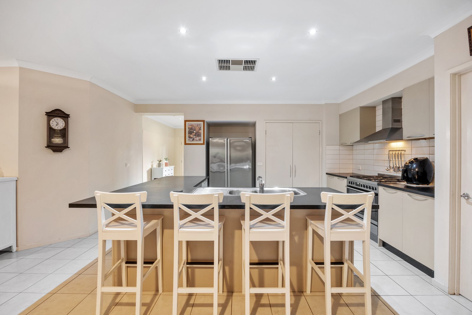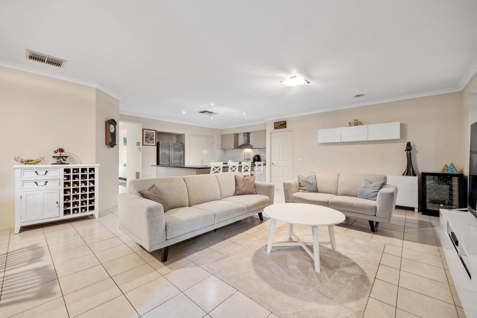 The master bedroom offers a private retreat with walk-in robe and a private ensuite. Three additional bedrooms, each with built-in robes, are serviced by a central bathroom. A laundry with outdoor access adds everyday practicality.