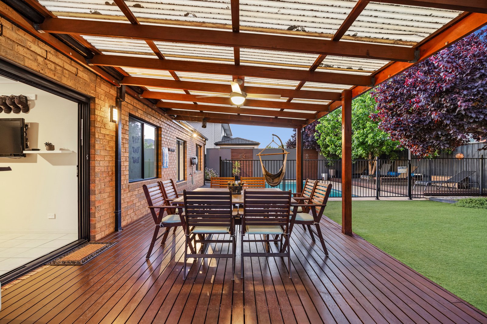 Step outside and discover your own private paradise. The undercover alfresco area overlooks a sparkling swimming pool that glistens in the sun, perfect for weekend BBQs, relaxed family afternoons, and evening gatherings. A charming side yard with a mature tree offers a peaceful spot to unwind.