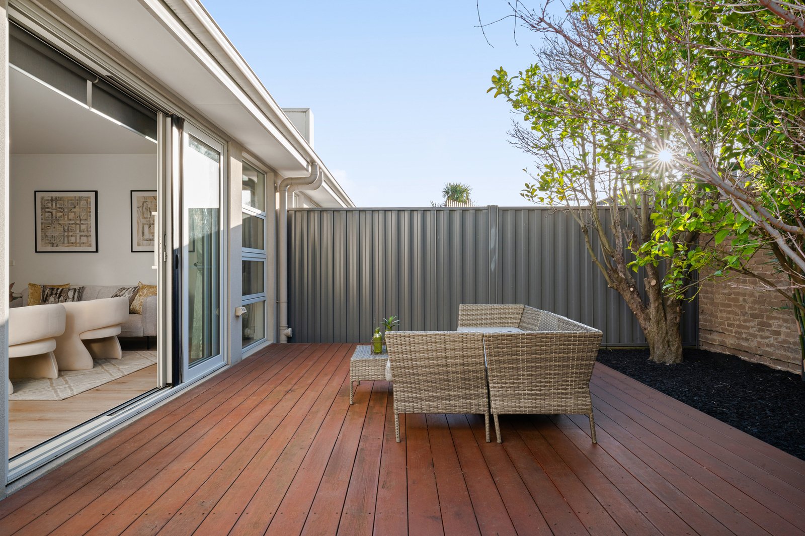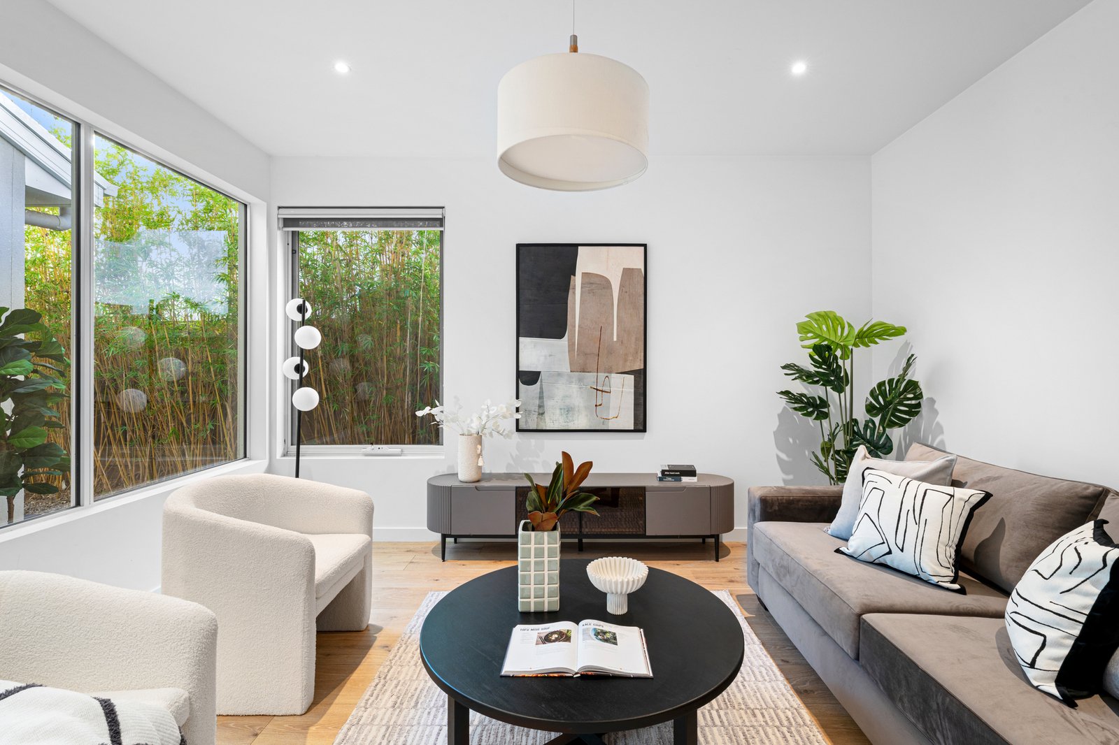 North-facing and bathed in natural light, the living area flows seamlessly onto a private alfresco deck—ideal for entertaining. The backyard opens to lush bamboo greenery, with even the kitchen’s glass splashback framing the tranquil view.