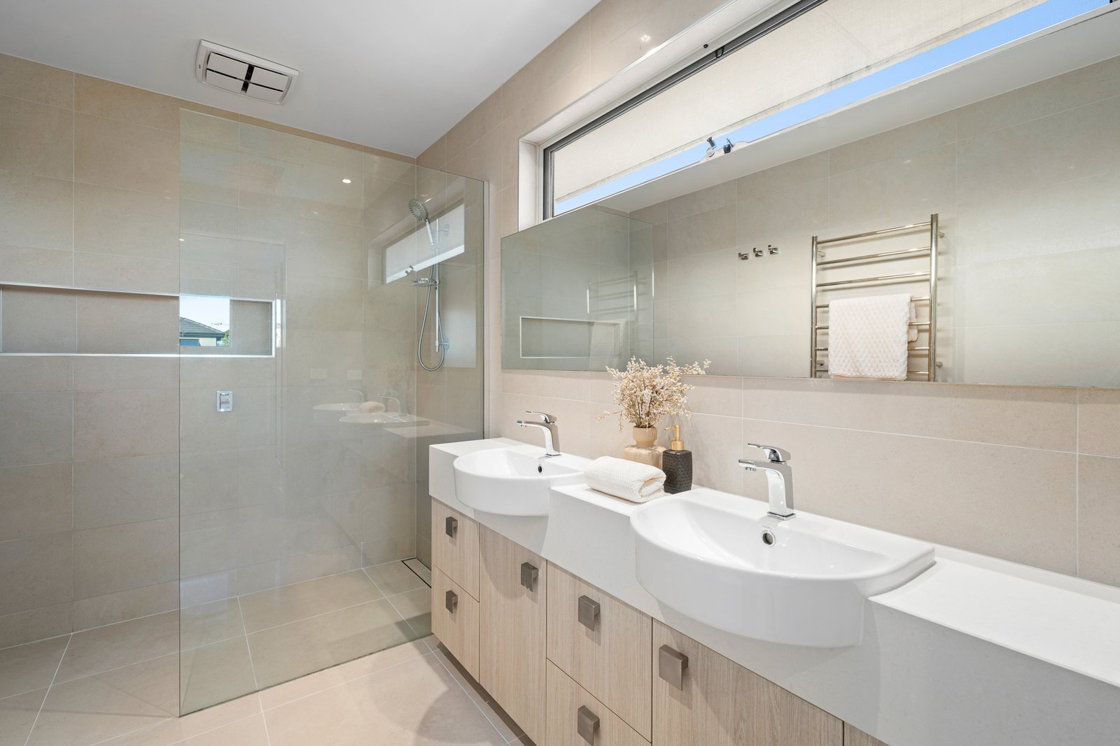 From the striking pivot door entry, European Oak-style flooring guides you through a thoughtfully zoned layout featuring two main bedroom suites—one on each level—each with fully tiled ensuites and generous built-in or walk-in robes. A large study area provides functional flexibility for working or studying from home.