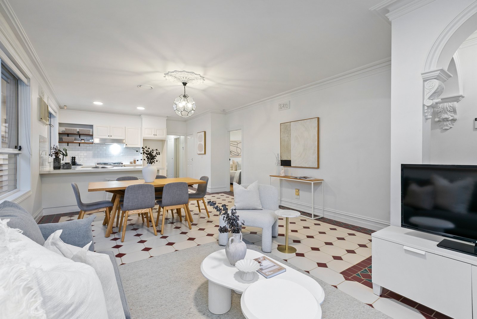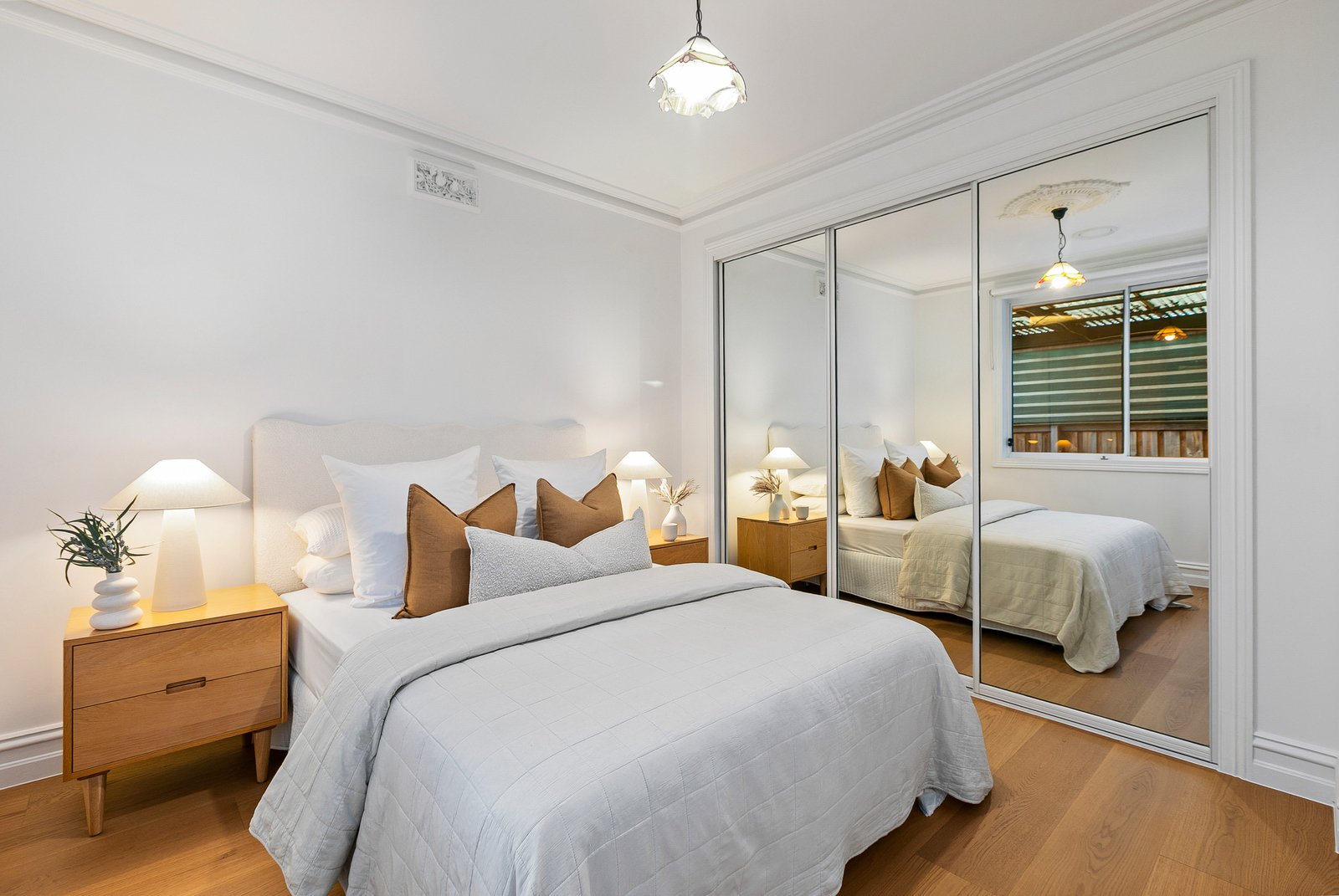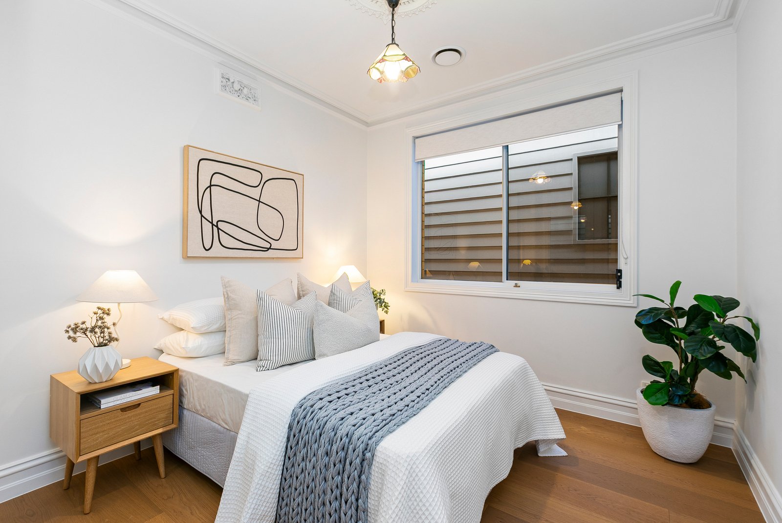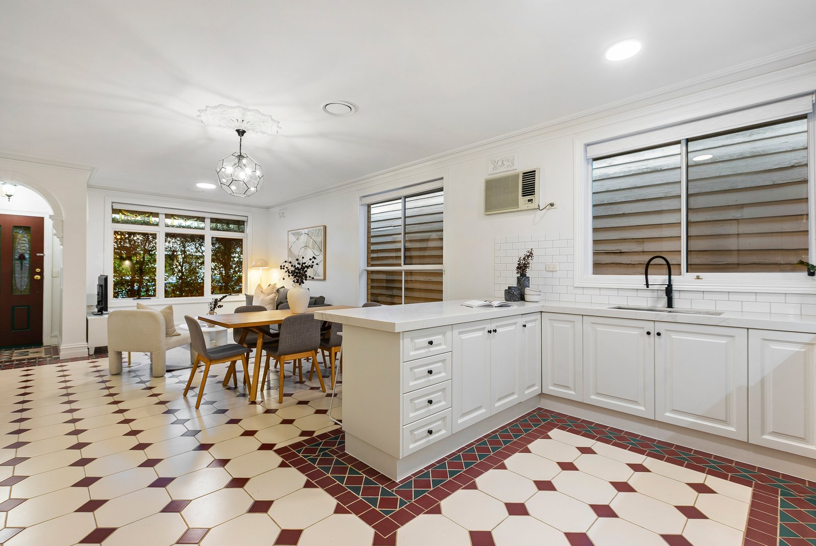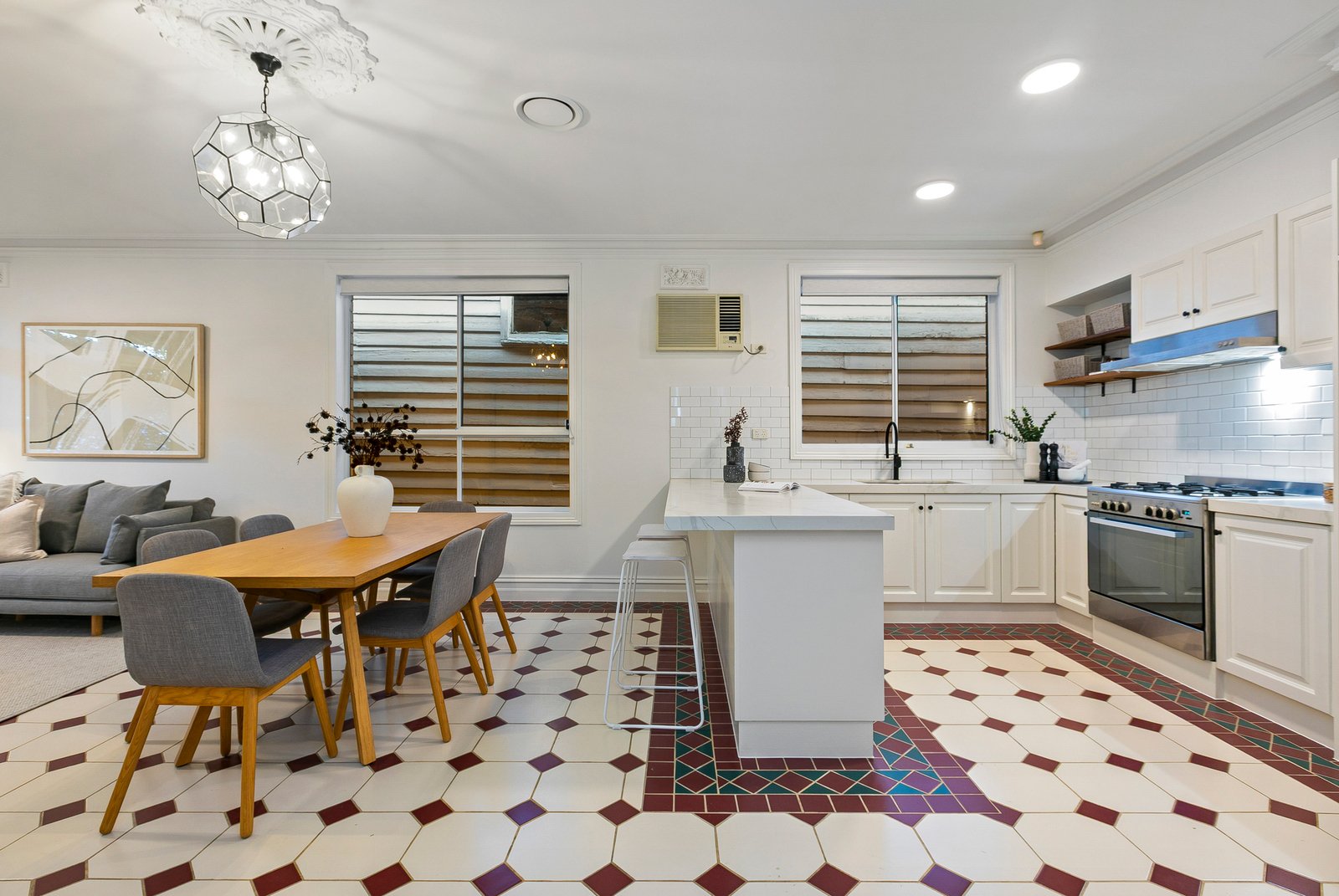 The living zones are awash with natural light, where fresh inviting décor combines with chic light fittings to create an on-trend ambience that feels effortlessly elegant. Authentic Federation-style tiles ground these spaces in period beauty, while the three generous bedrooms showcase soaring high ceilings, impressive archway details, and warm timber floors. Large windows complement the proportions, flooding the spaces with natural light.