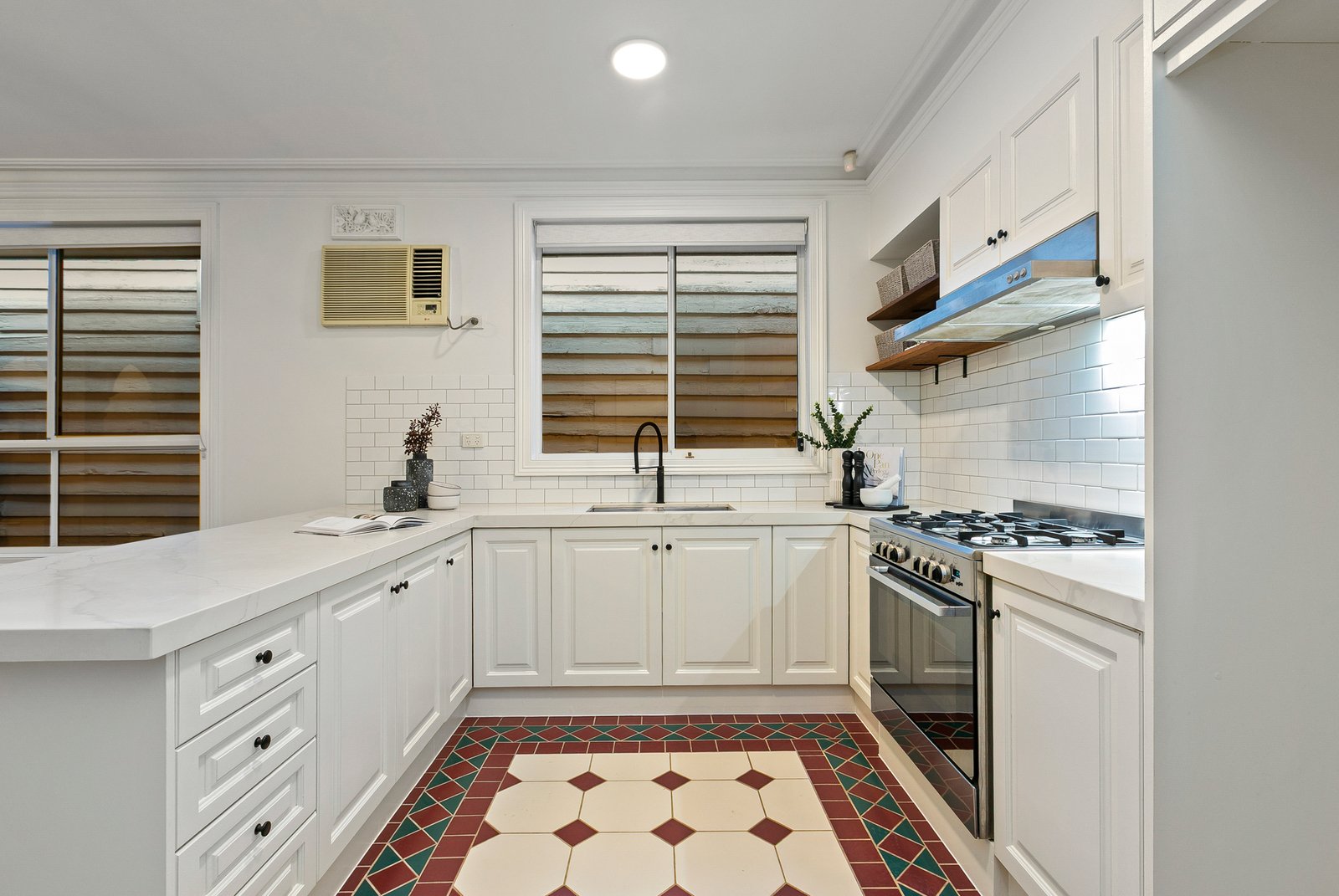 The entrance sets the tone with its decorative fretwork detailing, welcoming you into spaces where original charm has been thoughtfully preserved and enhanced. The stunning kitchen commands attention with its exquisite white stone benchtops, crisp white panelled cabinetry, and an elegant walk-in pantry, while the black gooseneck tap adds a sophisticated punctuation mark. Flowing seamlessly across 900mm wide Baltic pine gas cooktop and stainless-steel appliances, this is a space designed for both the everyday and the extraordinary.