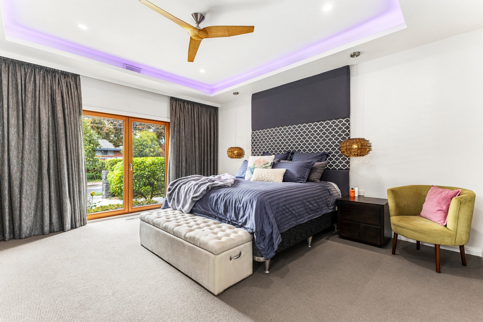 Styled with an eye for hospitality with restaurant-quality wine fridges, a display cabinet and a free-form timber bar, this centrally heated and cooled home has mood-enhancing LED-lit coffered ceilings throughout the ground floor with a well-placed laundry. Styled with a sophisticated curation of stone and solid hardwoods (for benchtops and flooring), there are polished-porcelain tiles alongside premium loop-pile carpet, and quality window-furnishings including airy sheers on ‘tilt-turn’ double-glazing.