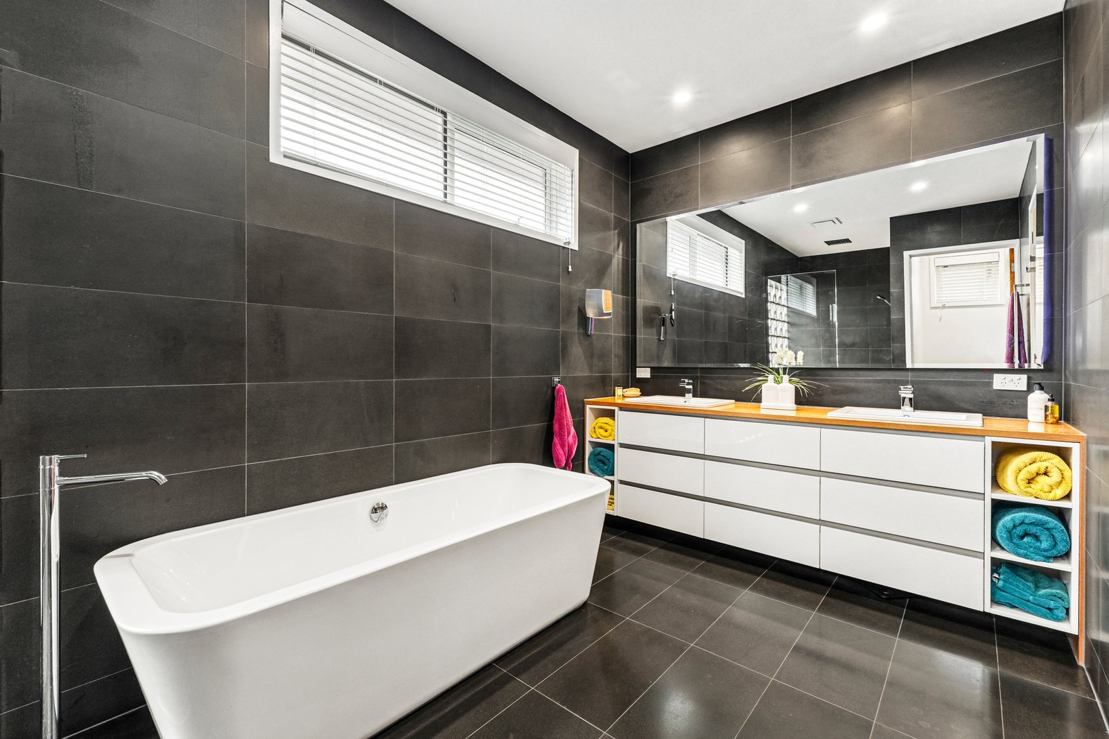 With designer fans, a smart separate facility bathroom design for the first floor, and a handy ducted vacuum, it’s all been considered (and included) here. Even the car accommodation is upscale and optioned-up with a car-enthusiast’s four-car garaging, including a hoist, plus up to four more spaces on the semi-circle drive.