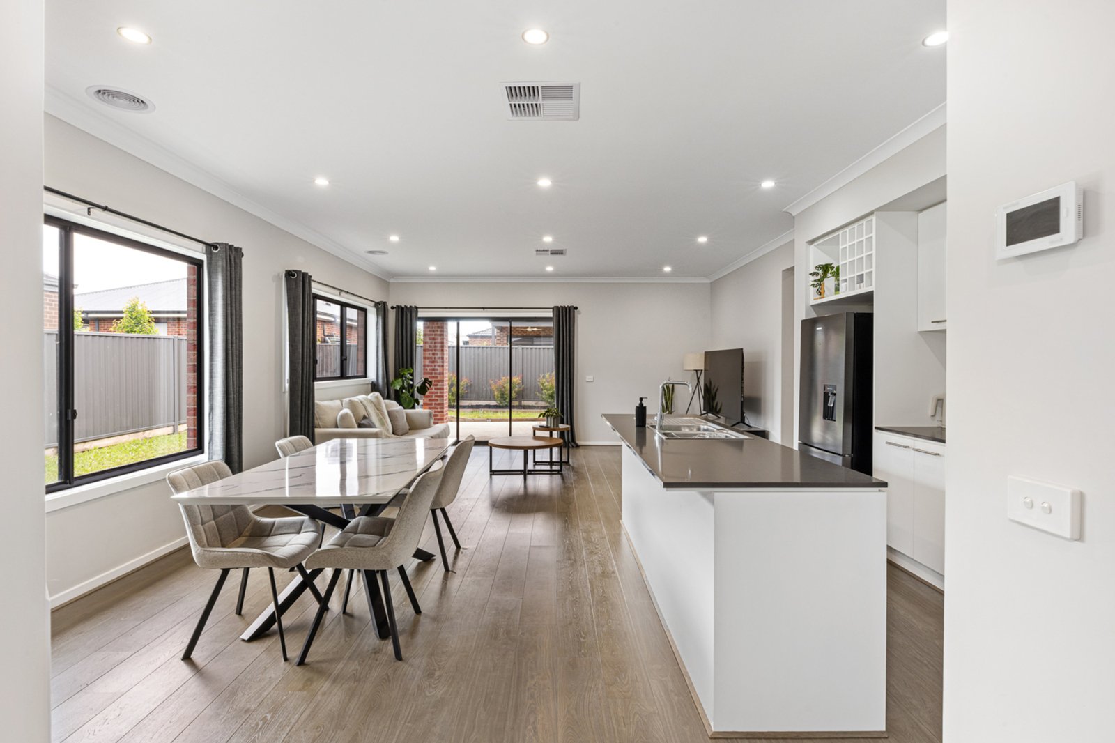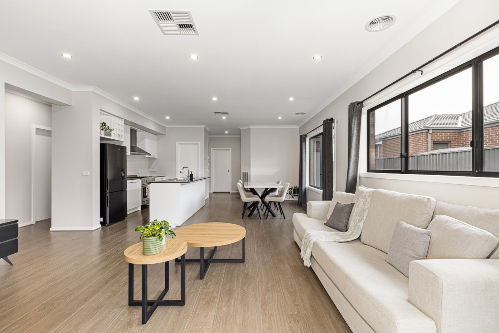 Step inside this neat and well-presented home to discover a thoughtfully designed floor plan with light-filled open spaces and modern finishes throughout. The central hub of the home features a spacious open-plan living, kitchen, and dining area — perfect for everyday living and entertaining. The sleek kitchen includes quality appliances, ample storage, and a large island bench, providing both style and functionality. A second living area offers the flexibility of a kids’ retreat, home theatre, or quiet lounge space.