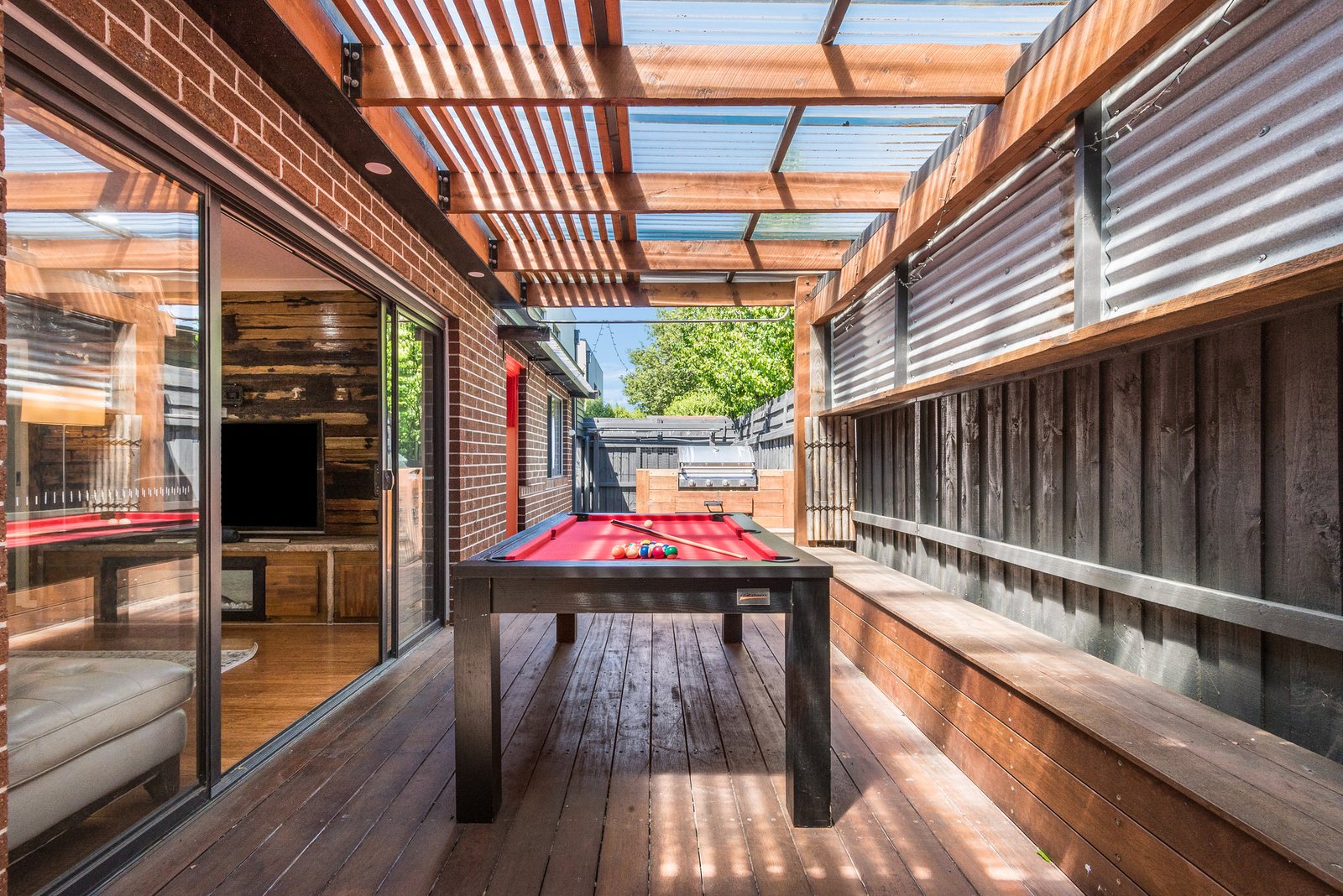Outside, the undercover alfresco extends out to a sun deck, offering a private space to relax or entertain with built-in seating and barbecue facilities. Surrounding gardens are designed for low maintenance upkeep, allowing you to make the most of your free time. The garage includes direct internal entry, plus a built-in bench and storage, offering a versatile space for workshop facilities.