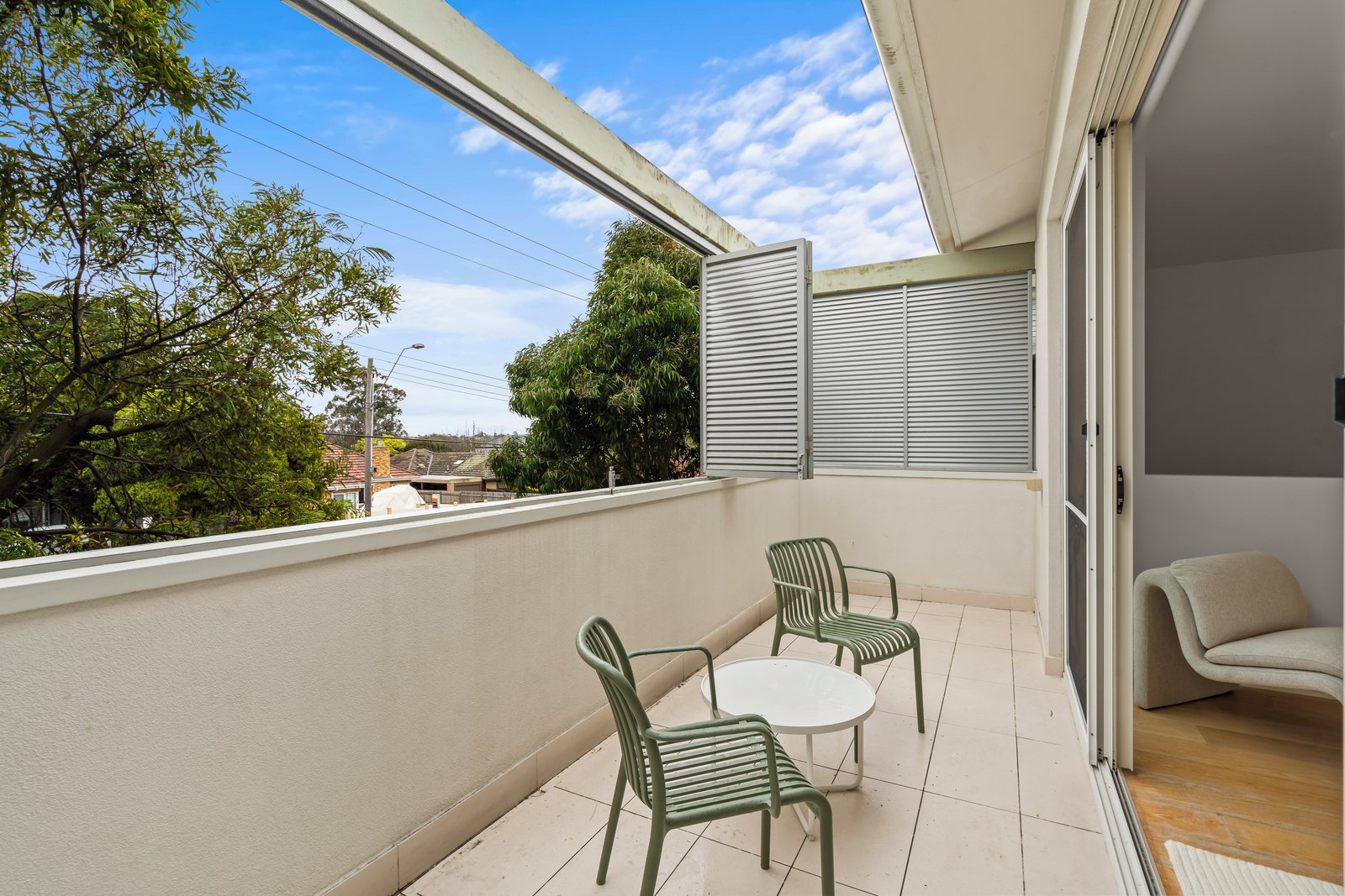 Bathed in natural light, the upper level showcases an open-plan living and dining area enhanced by warm timber floors and a seamless connection to a private balcony with retractable shutters—perfect for entertaining or quiet relaxation. The designer kitchen impresses with stone benchtops, soft-close cabinetry, and quality stainless-steel appliances.