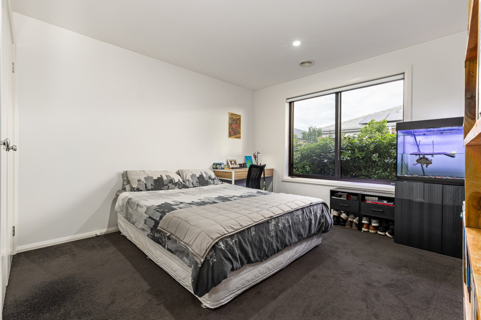 The home accommodates four bedrooms plus a study or optional fifth bedroom. The king-size master suite boasts a walk-in robe and an additional second wardrobe for ample storage. The family bathroom is thoughtfully designed and complemented by an additional separate toilet for convenience.