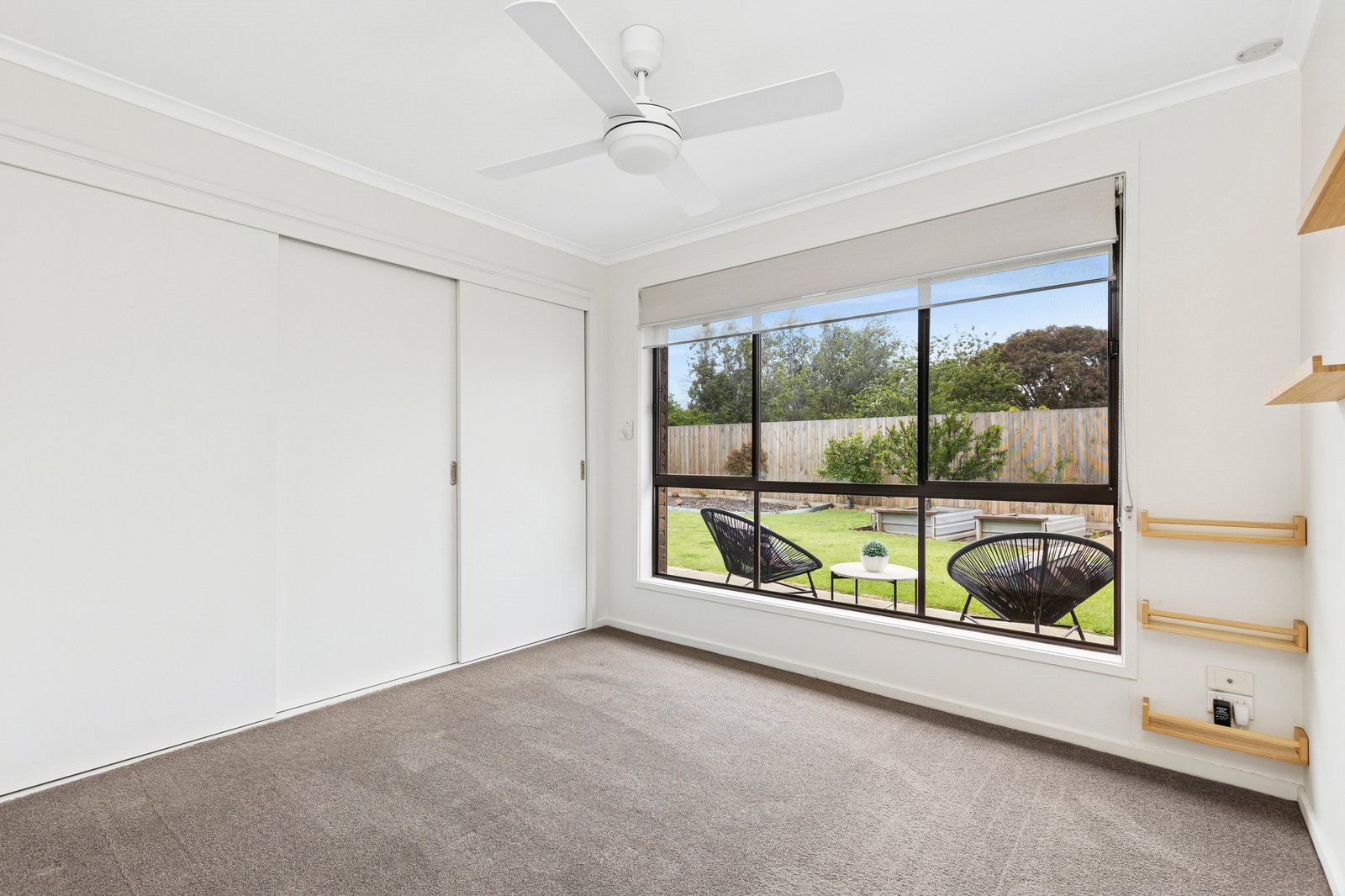 All three bedrooms are positioned toward the rear of the home, each fitted with built-in robes and ceiling fans. A central bathroom and separate toilet service the home with ease.