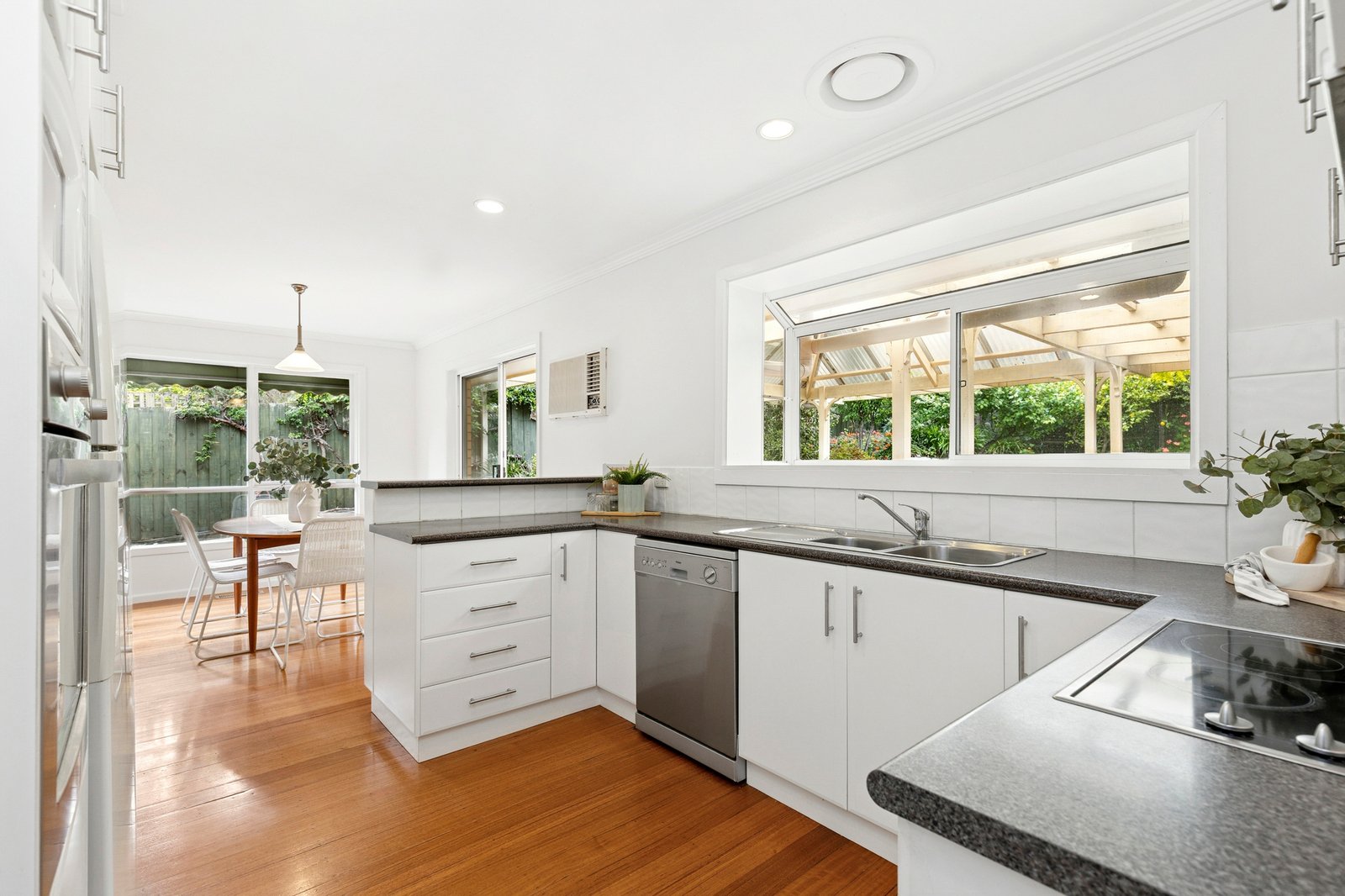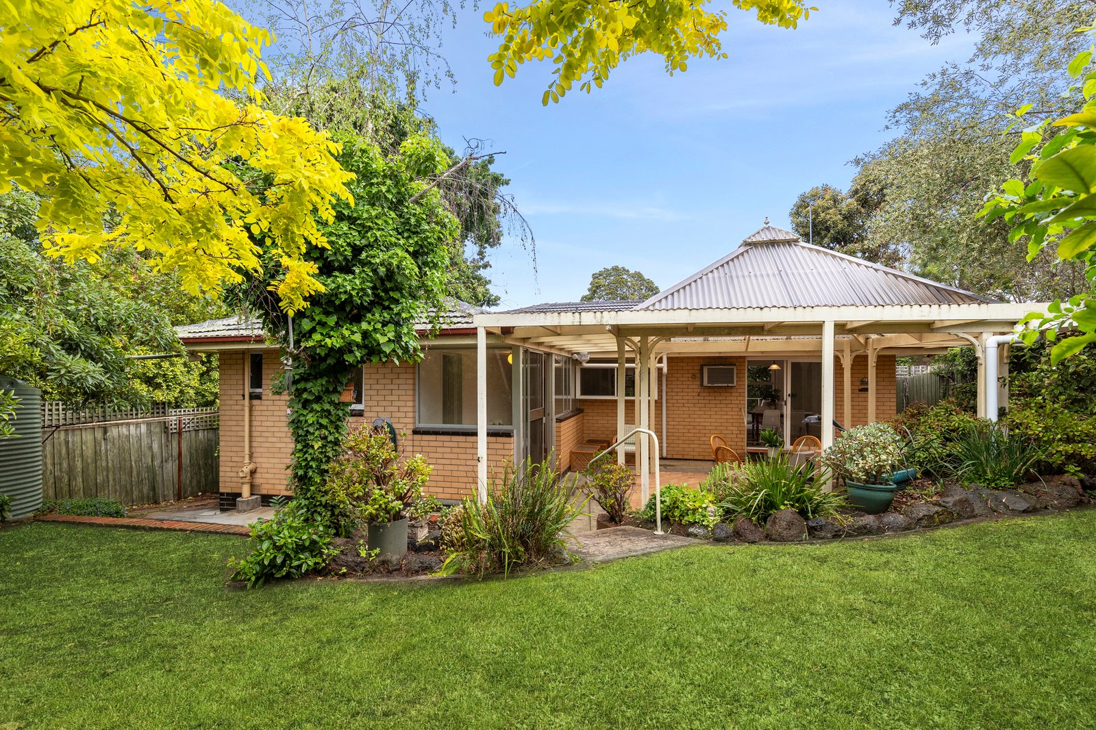 Set back from the road amongst lush established gardens, the classic façade is timeless in appeal. A wide entry leads into the inviting living area, featuring an original mantel with gas heater, built-in bookshelves, ornate cornice, pendant lighting, large windows and French doors to the patio, with a picturesque garden outlook. The adjoining dining area and kitchen enjoy direct access to the alfresco for easy indoor-outdoor entertaining. The updated kitchen features a 600mm wall oven, electric cooktop, dishwasher, appliance cupboard, excellent storage provisions and a box bay window overlooking the outdoor entertaining. Equpped for year-round comfort, additional features include ducted heating and air conditioning.