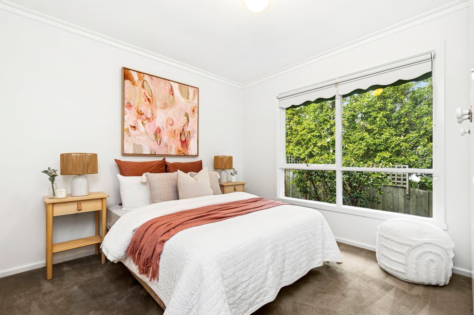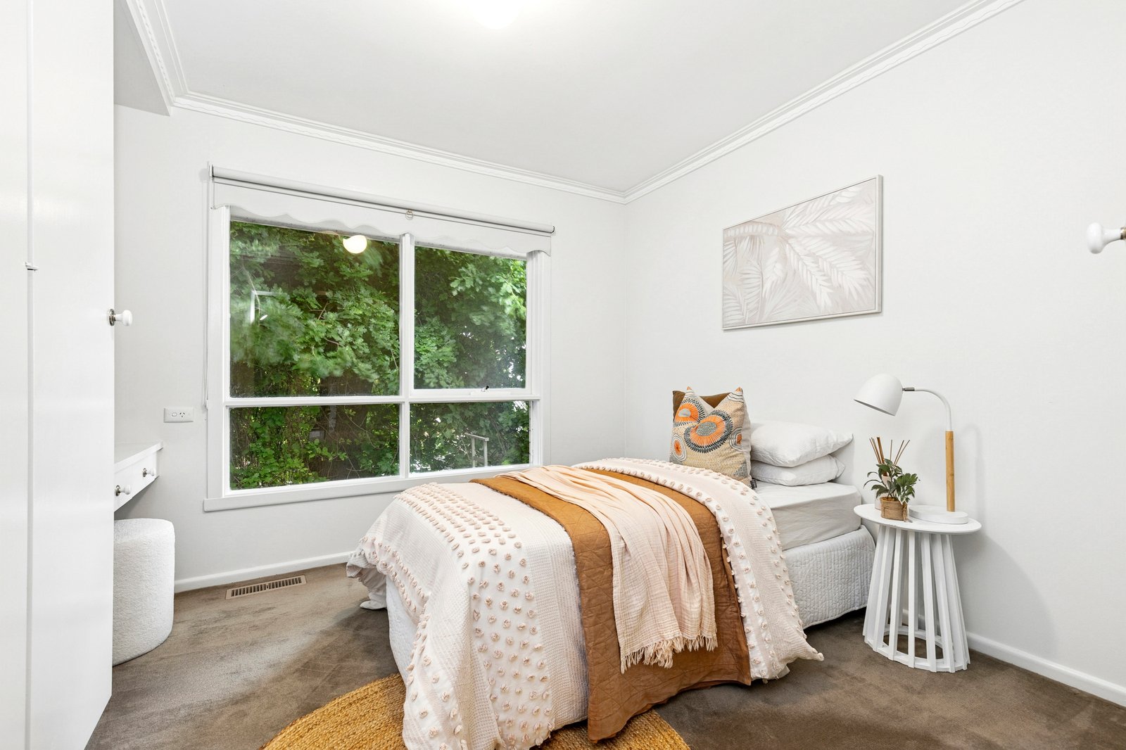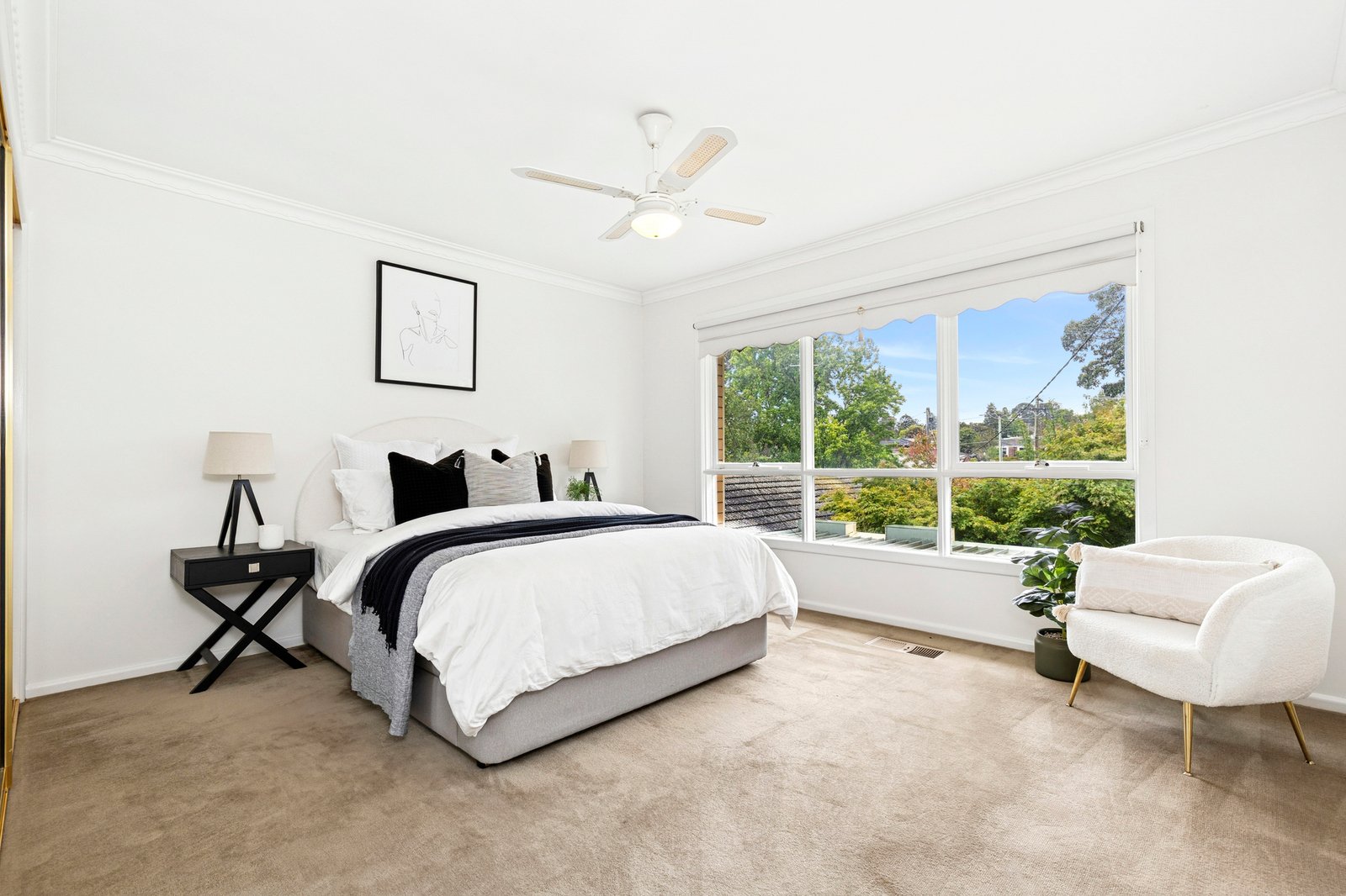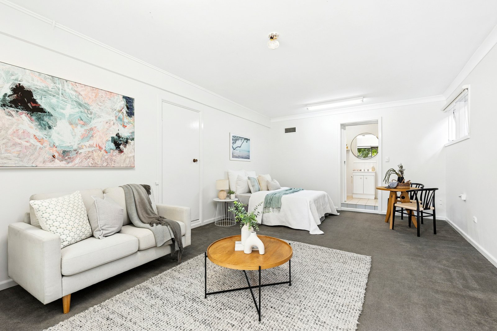 The main bedroom is generous in size with built-in robes, and a picturesque elevated vista. Two additional bedrooms on the upper level also include built-in robes, one with a built-in desk, all serviced by a bright family bathroom. A large studio with an ensuite and storeroom on the ground level offers a versatile space for a fourth bedroom, large home office, creative space or potential Airbnb rental.
