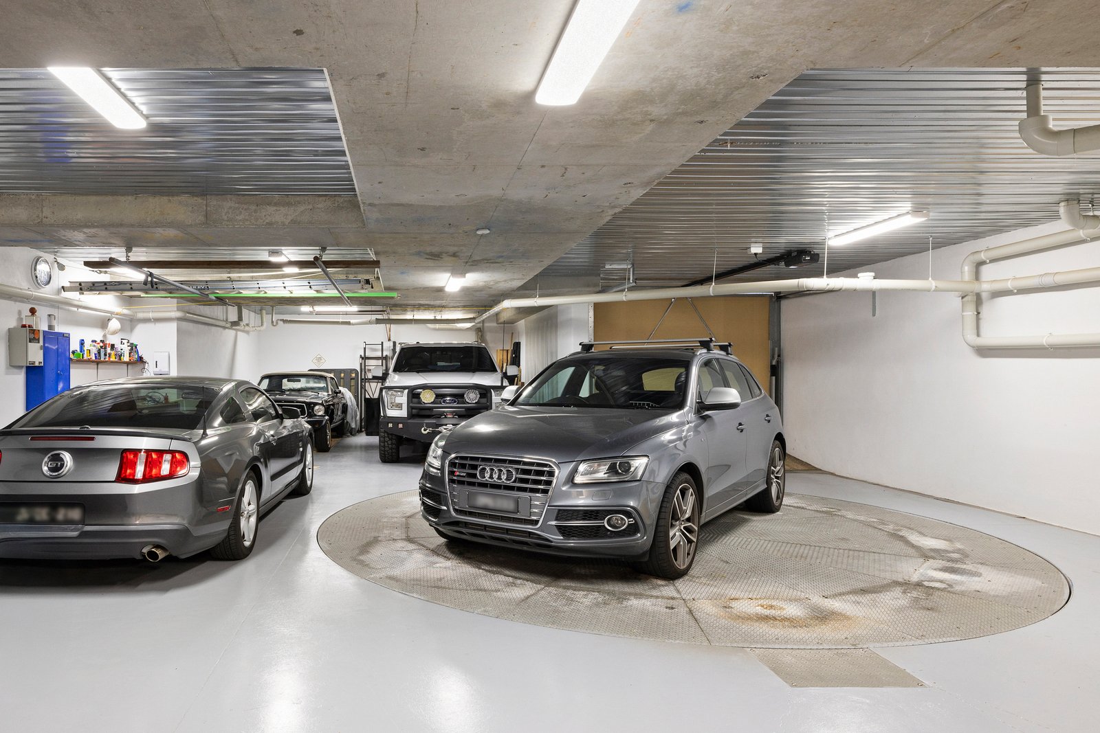 In-floor hydronic heating warms the lower level – there is also reverse cycle heating/cooling throughout. Additional standout features include CBUS connectivity, comprehensive security, sound system, a dumb waiter, electric blinds, 19 solar panels (battery ready) and four-car basement garage with turntable and extensive storage.