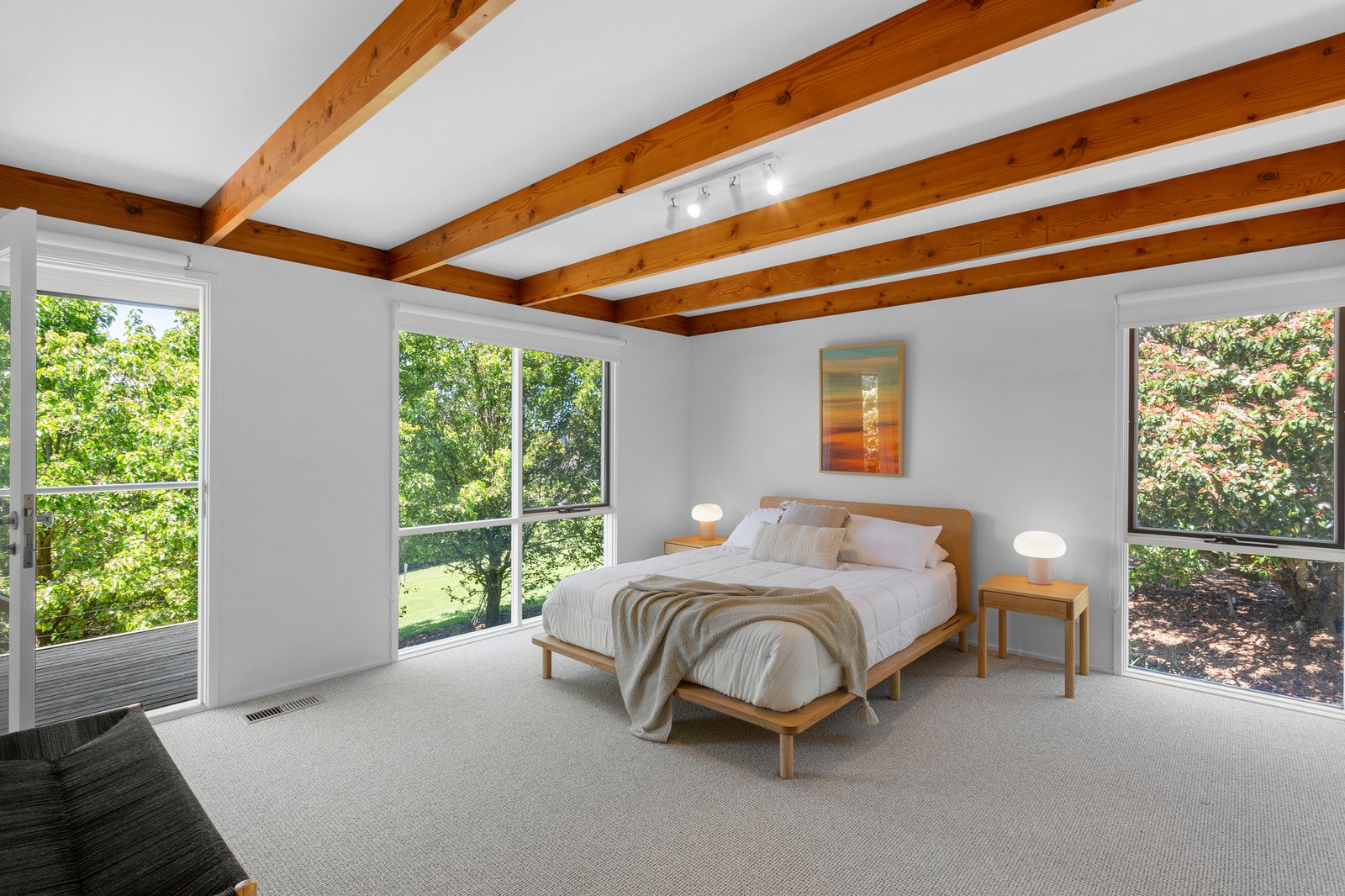 Beautifully presented and maintained, the two-storey layout features four bedrooms, a central bathroom, and a relaxed, open-plan living and dining area upstairs, featuring a wood-fired heater, split system AC and expansive north-facing outlooks to Westernport. A well-appointed kitchen is situated adjacent, while two additional toilets and a laundry room are located downstairs, offering practical amenities for a well-rounded family living experience. Outside, the broad verandah and surrounding open space reflect the serene ambience, allowing ample room to rework, or enjoy as is, with lawns stretching out below providing scope for a pool, tennis court, or future architectural design.