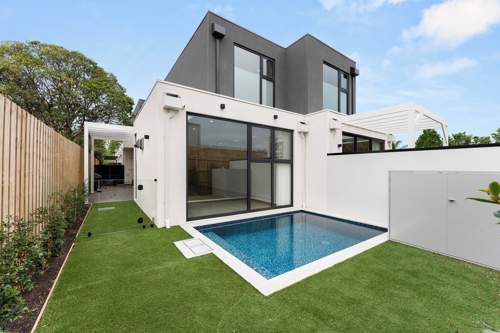 The open-plan living and dining areas flow effortlessly to the outdoor entertaining space, where a north-facing alfresco area and sparkling pool invite relaxed gatherings and summer enjoyment. The gourmet kitchen is a chef's dream, complete with expansive stone benchtops, premium Gaggenau appliances, an integrated double fridge/freezer, a butler's pantry, and custom cabinetry that blends beauty with function.