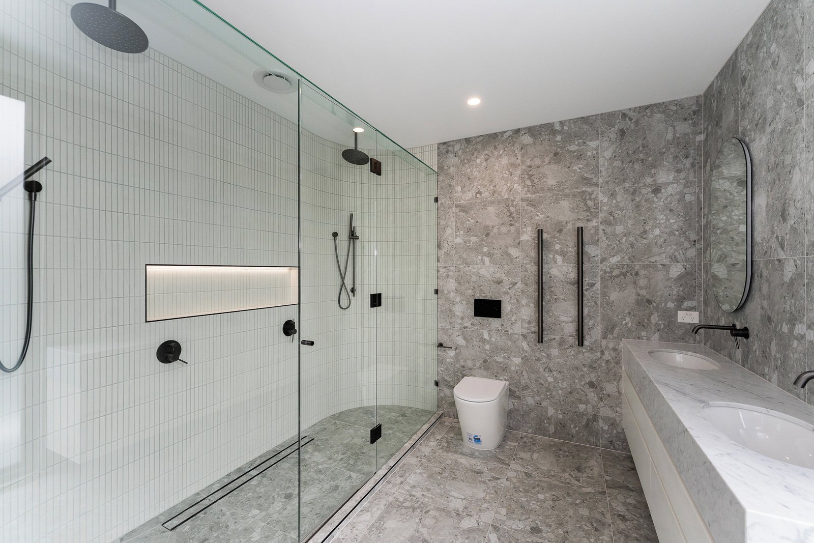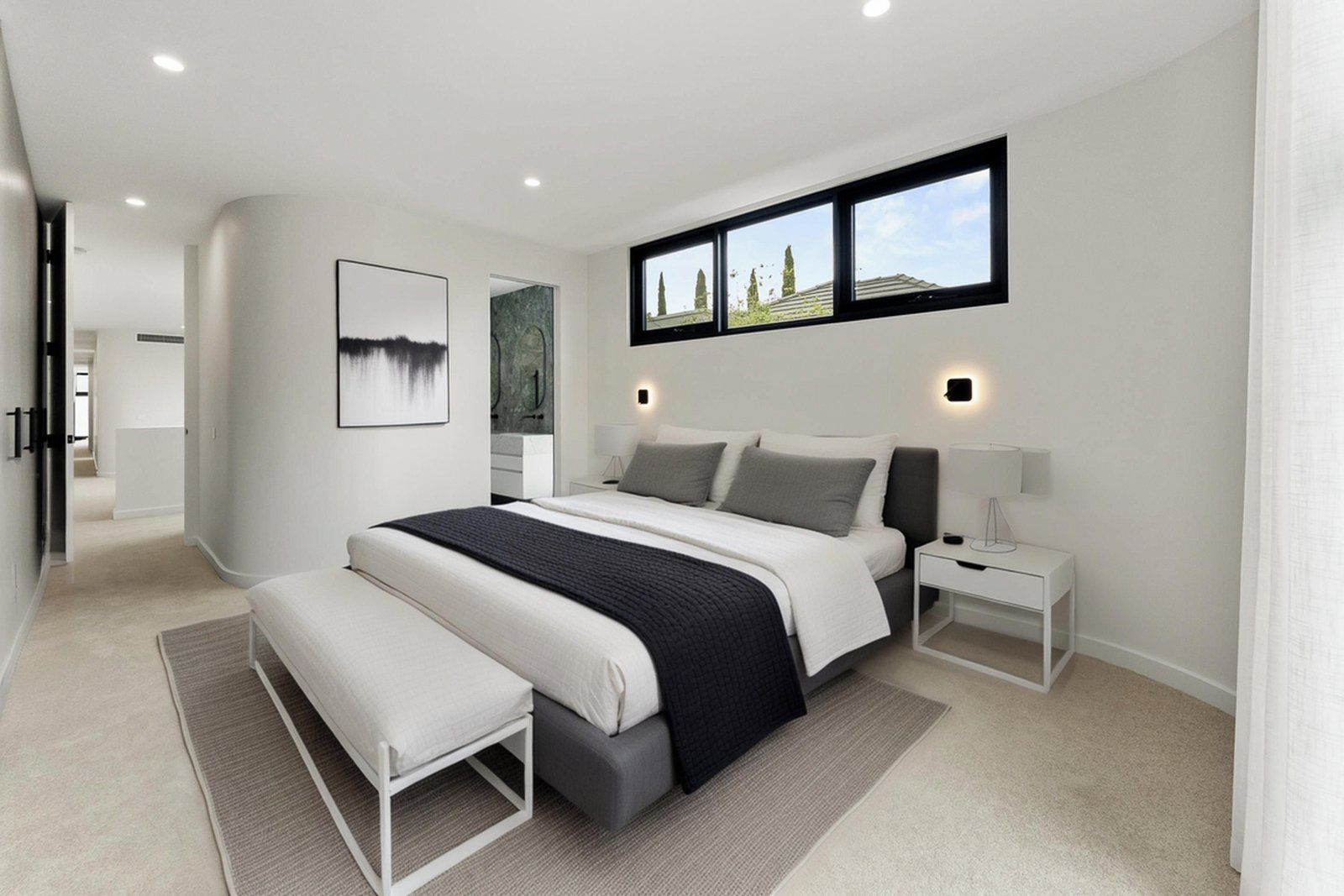 The master suite is a private retreat featuring bespoke cabinetry, a luxurious ensuite with twin marble vanities and dual showers, and a sense of refined calm. Each upstairs bedroom includes its own walk-in robe and private ensuite, offering space and privacy for every family member. A guest suite on the lower level provides flexible living options, while a sun-filled retreat and a dedicated study perfectly support modern family needs.