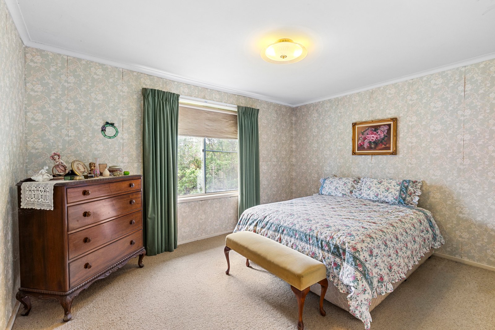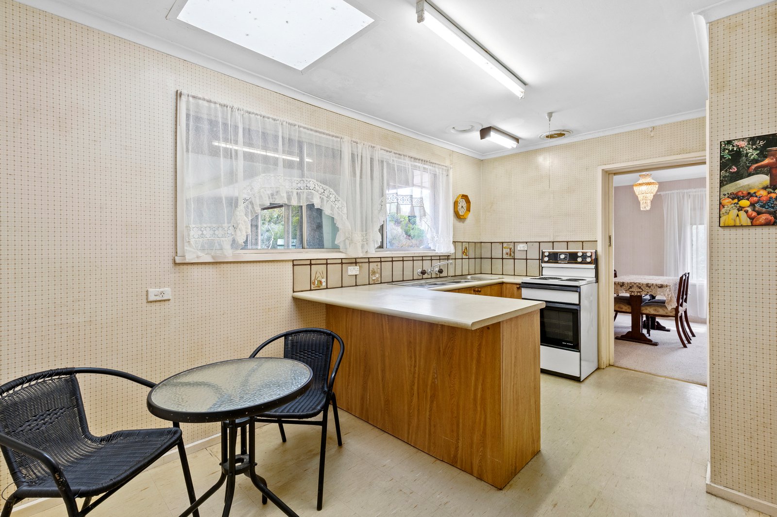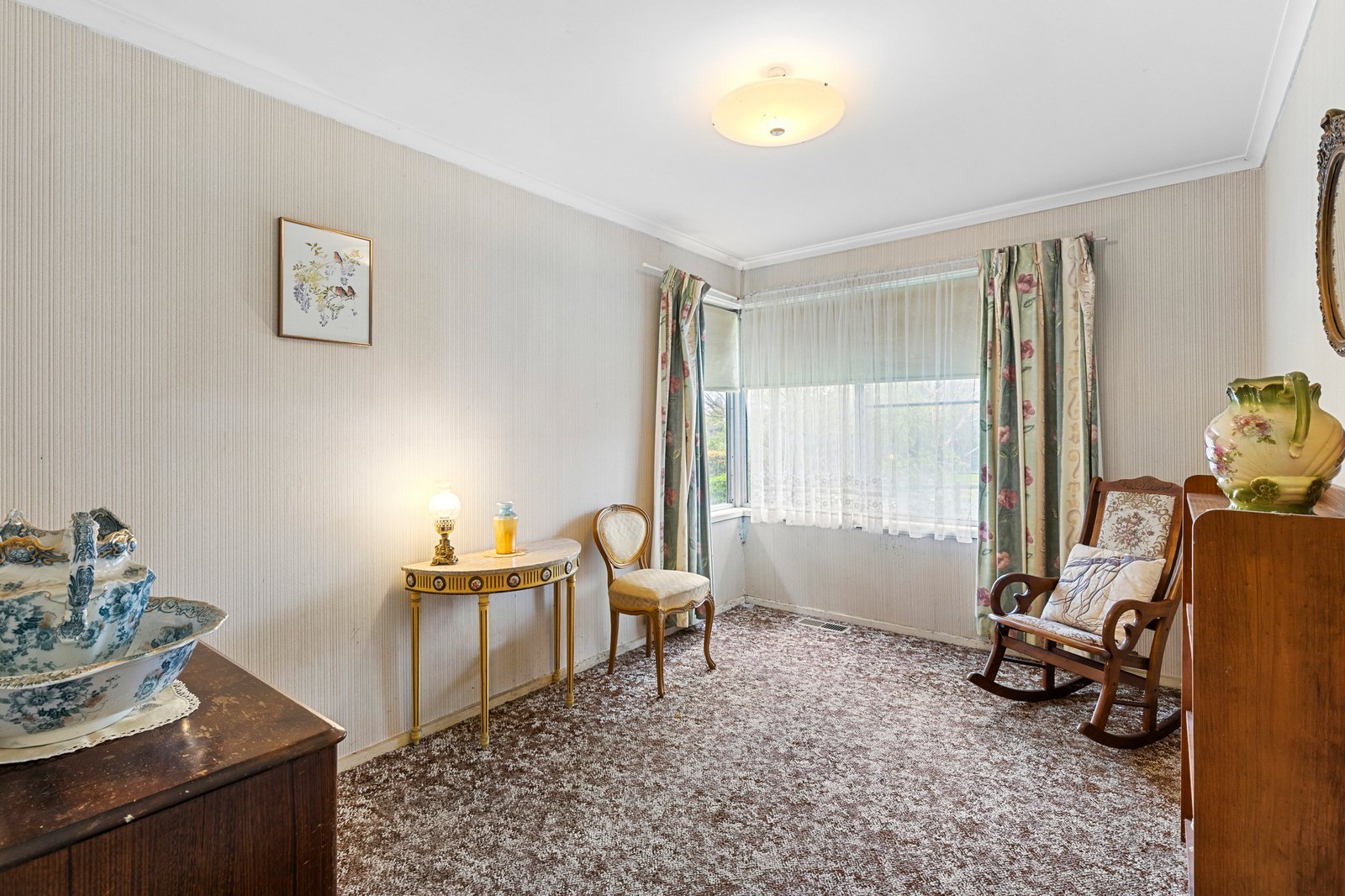 Set back behind mature trees, the home invites entry either through a quaint front porch or directly into the sunken fireside living area. Beyond, the layout unfolds through a vintage kitchen with freestanding stove to a formal dining and lounge, while three bedrooms, a main bathroom with a separate WC and laundry complete the original floorplan.