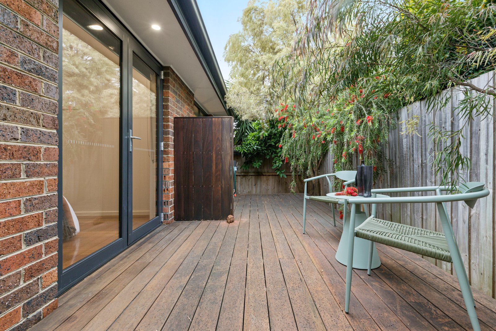 Mirrored wardrobes can be found in both of the generous bedrooms; they share a sleek monochrome bathroom with walk-in rain shower. A full laundry is also offered while outside, an extremely private courtyard with decking, low maintenance grassed area and undercover patio create the ideal spot to unwind in the fresh air.
