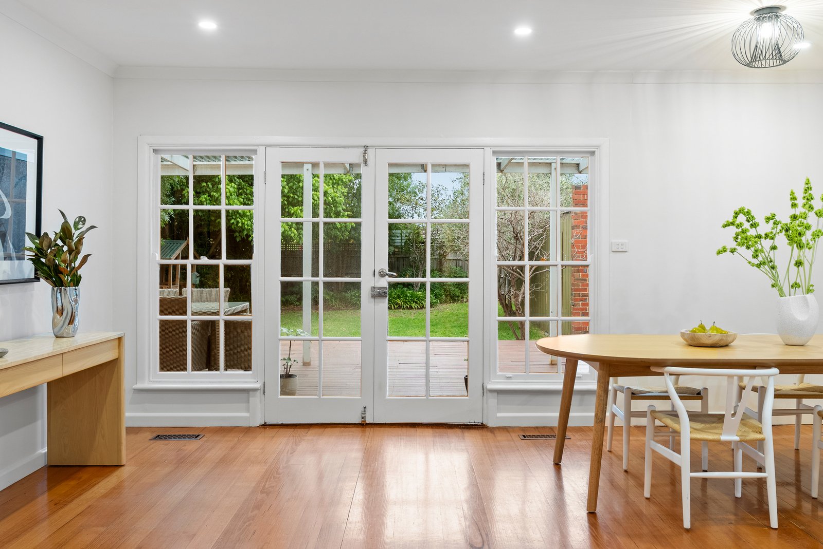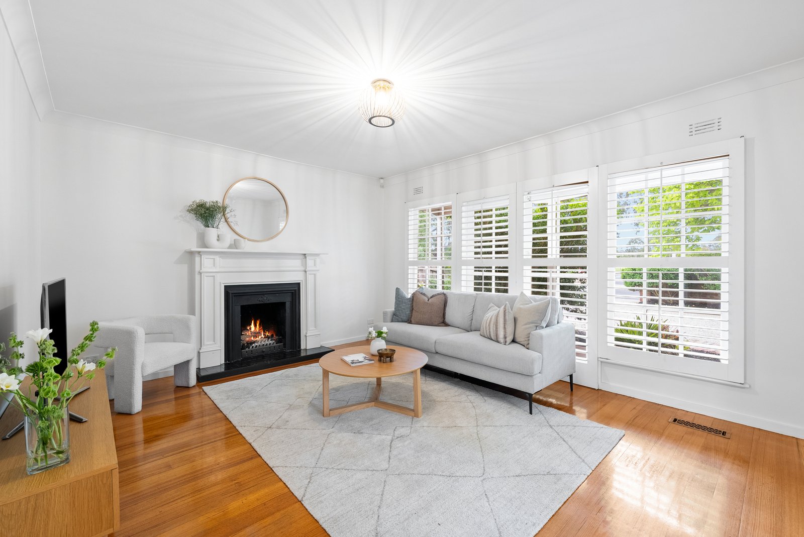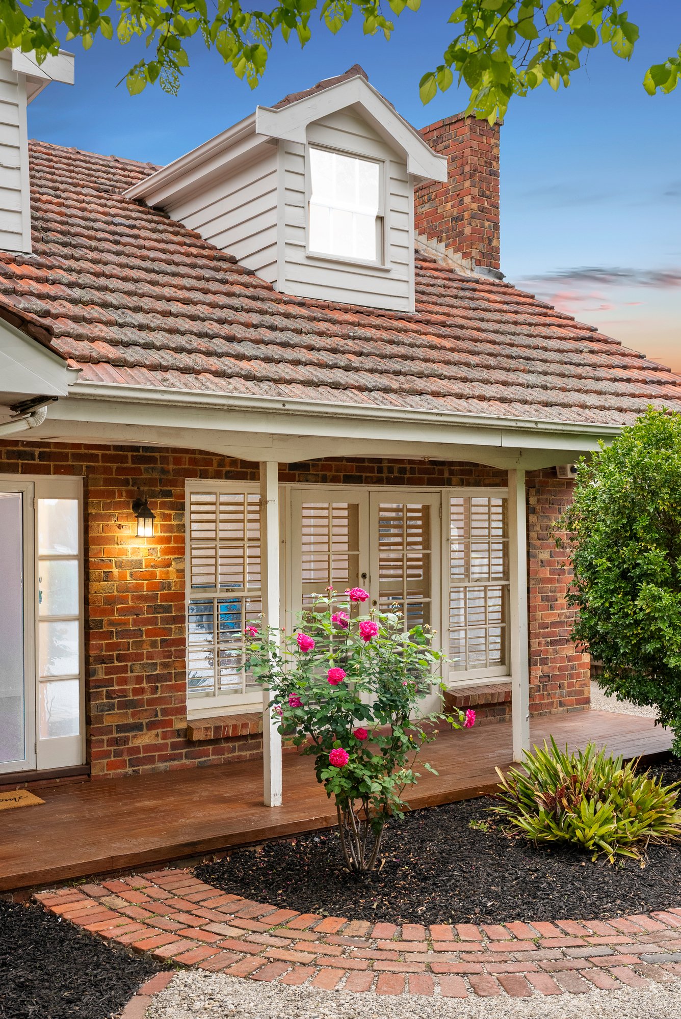 A charming facade framed by lush established gardens introduces interiors where warmth, proportion, and natural light unite in perfect harmony.