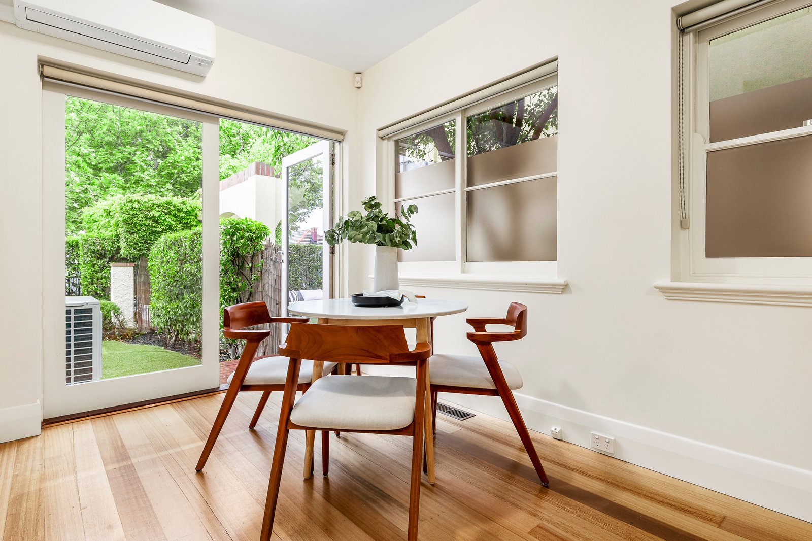 The bright kitchen is classically appointed with Caesarstone benchtops, integrated Miele appliances, a pull-out pantry and abundant gloss cabinetry. An adjoining breakfast courtyard offers another peaceful outdoor retreat, perfect for morning coffee or a stroll to local favourites such as St Martin’s Café or Escargot Bakery to enjoy the vibrant village atmosphere.