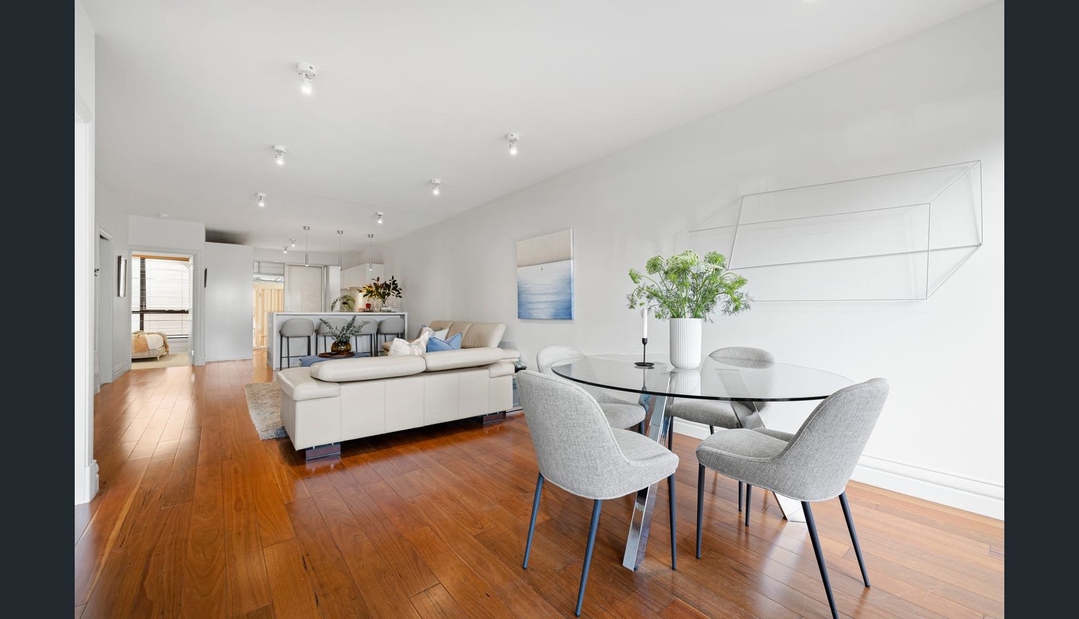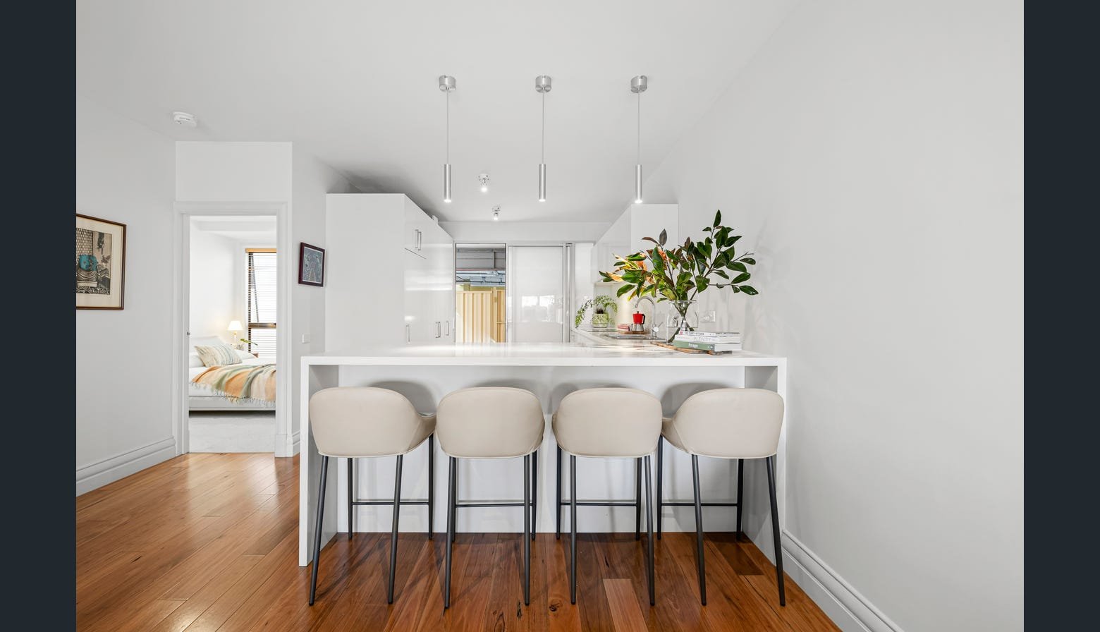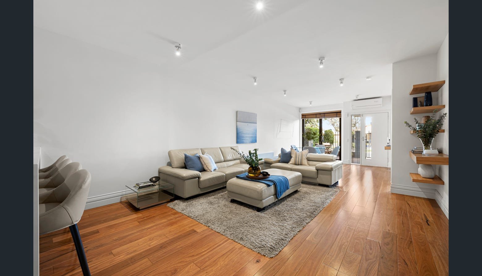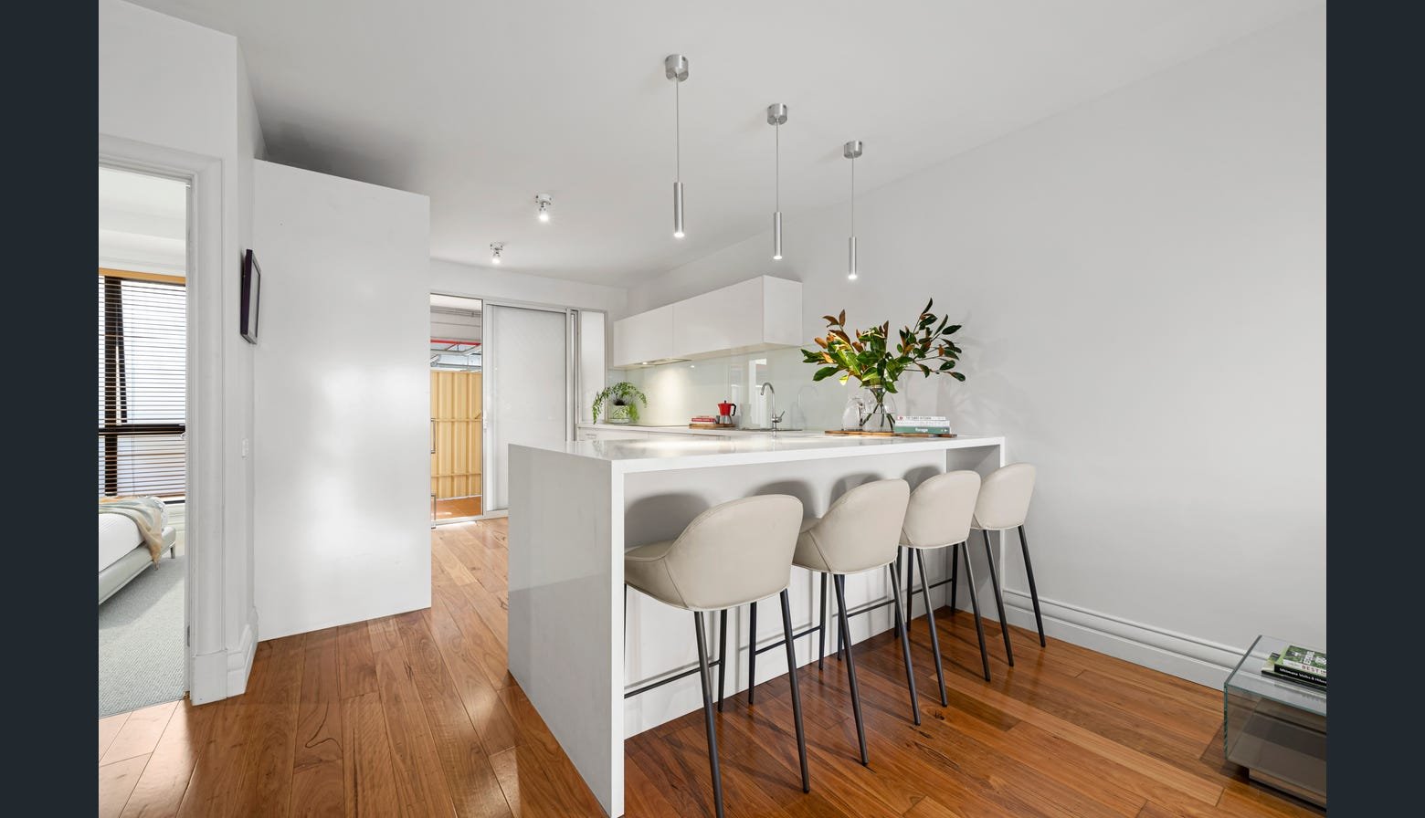 With the warmth of textural Australian hardwood floors, the luxe of brand-new loop-pile carpets and the ease of timber venetians, this reverse-cycle air-conditioned entertainer is so well-considered with abundant storage including a bespoke-fitted walk-through robe (with jewellery drawer and pull-down shirt-rail), a discreet European laundry and a deep linen-press. With full sun and all-weather access for the second rear courtyard, even the garaging is in world of its own – with two easily accessible street-level spaces via a rear lane.