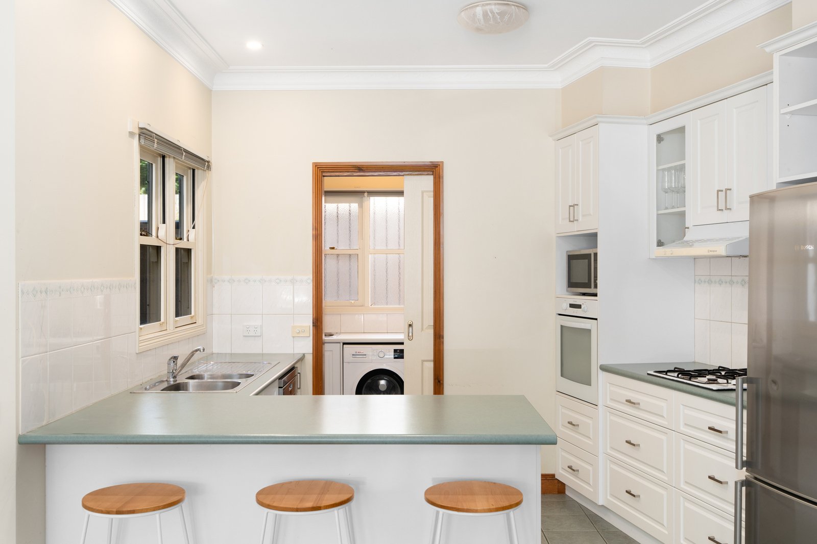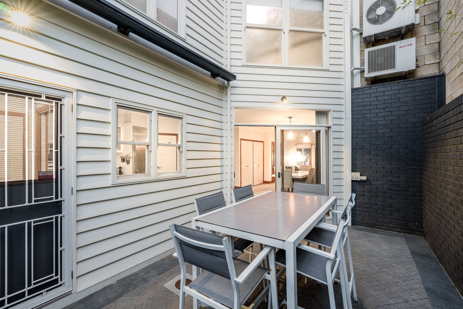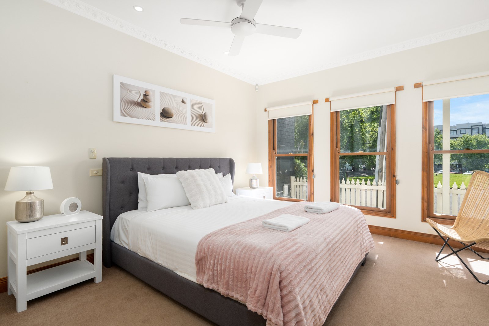 From the moment you arrive, the charming white weatherboard façade and classic picket fence set a welcoming tone. Inside, the open-plan living, dining, and kitchen area forms the heart of the home, a warm and inviting space complete with a gas log fire for cosy nights in. Step outside to the private courtyard, enhanced by a retractable awning for all-season enjoyment. The kitchen is beautifully appointed with a step-in pantry, electric oven, gas cooktop and dishwasher. The ground floor master suite provides a peaceful retreat featuring a generous walk-in robe and ensuite. A powder room and well-fitted laundry with additional storage complete the lower level.