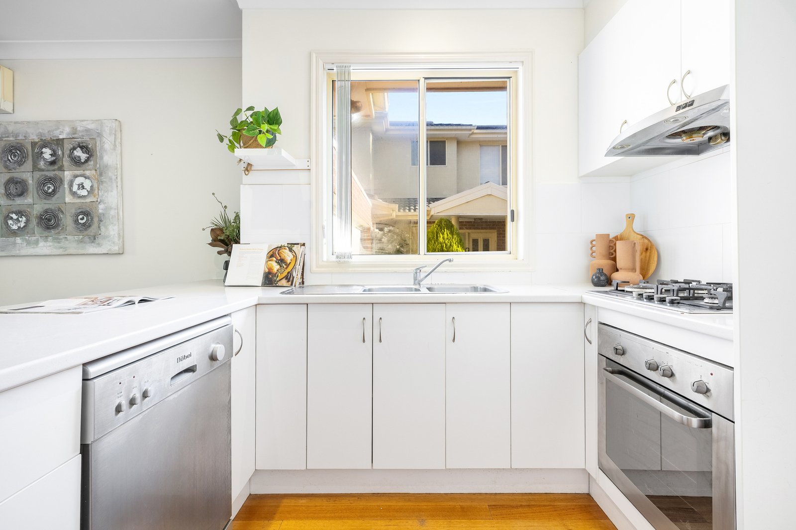 The contemporary kitchen equipped with stainless steel appliances and ample storage, connects seamlessly to the dining area and private rear garden — an ideal setting for outdoor entertaining or gardening amid peaceful parklands.
