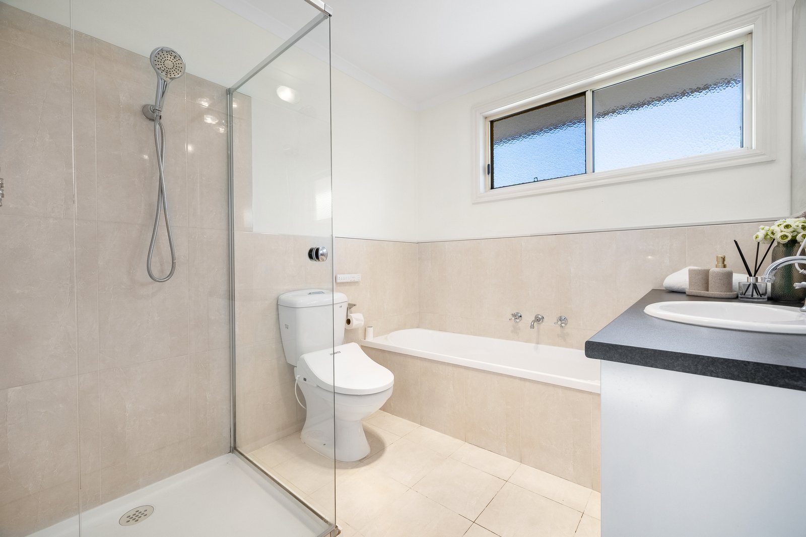 The master bedroom is conveniently located on the ground floor and features a walk-in robe and stylish ensuite, offering ease of living and a touch of luxury. Upstairs, two additional bedrooms each include built-in robes and share a large bathroom, accompanied by a versatile retreat or study area — perfect for working from home or as a secondary retreat.