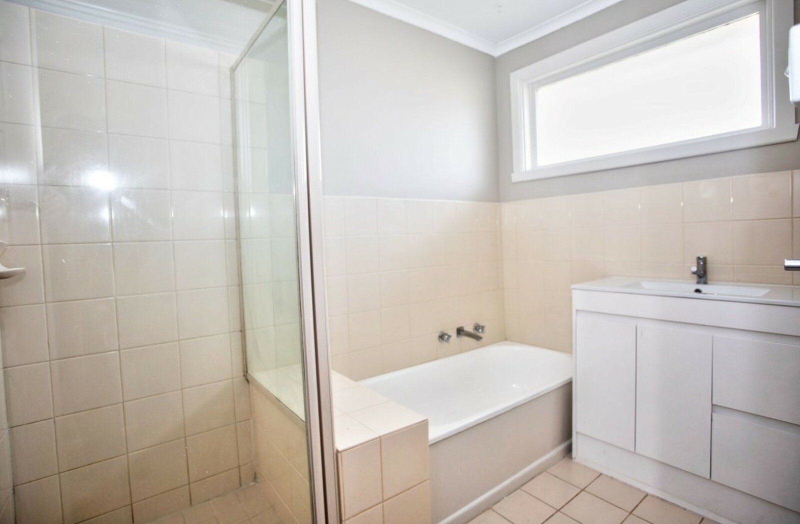 Upon entry, you’re welcomed by a central hallway leading to the three bedrooms and a well-appointed main bathroom featuring a shower, bath, vanity, and separate toilet.
